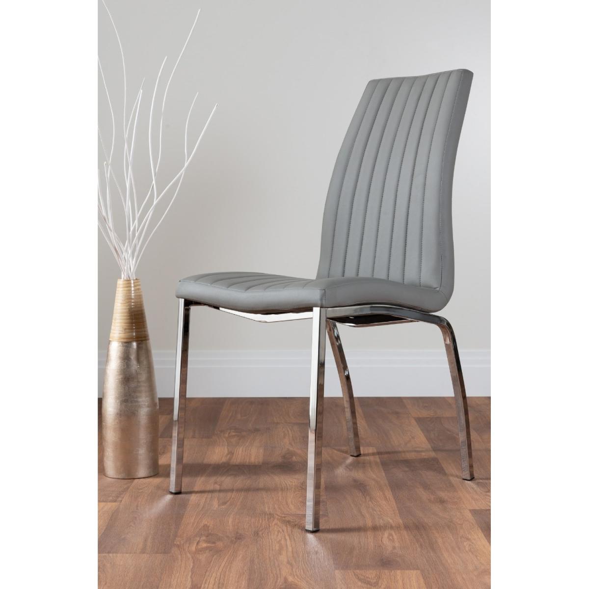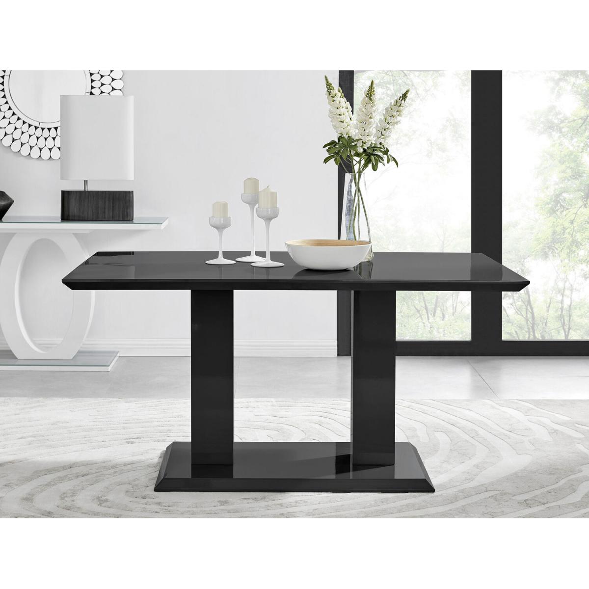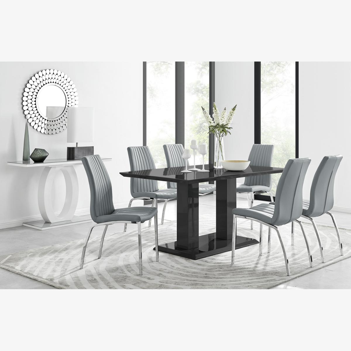 Add a touch of class to your dining room with this beautiful Imperia dining set. The dining table boasts a large 150x90cm surface leaving plenty of room for guests and has a slick high gloss lacquer finish making it a stand out addition to any home! Coupled with our Isco chrome and faux leather dining chairs clean lines combined with comfort and texture to make them a perfect match to complete this dining set. The soft touch faux leather seat pads are interspaced with vertical stitching and are designed for comfort with the added bonus of looking great. Value for money with style combine to make an unbeatable package!