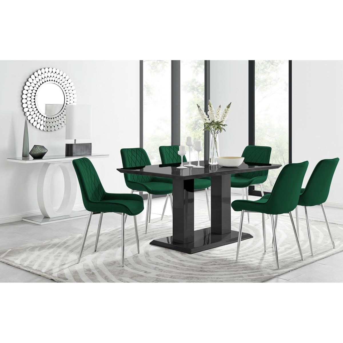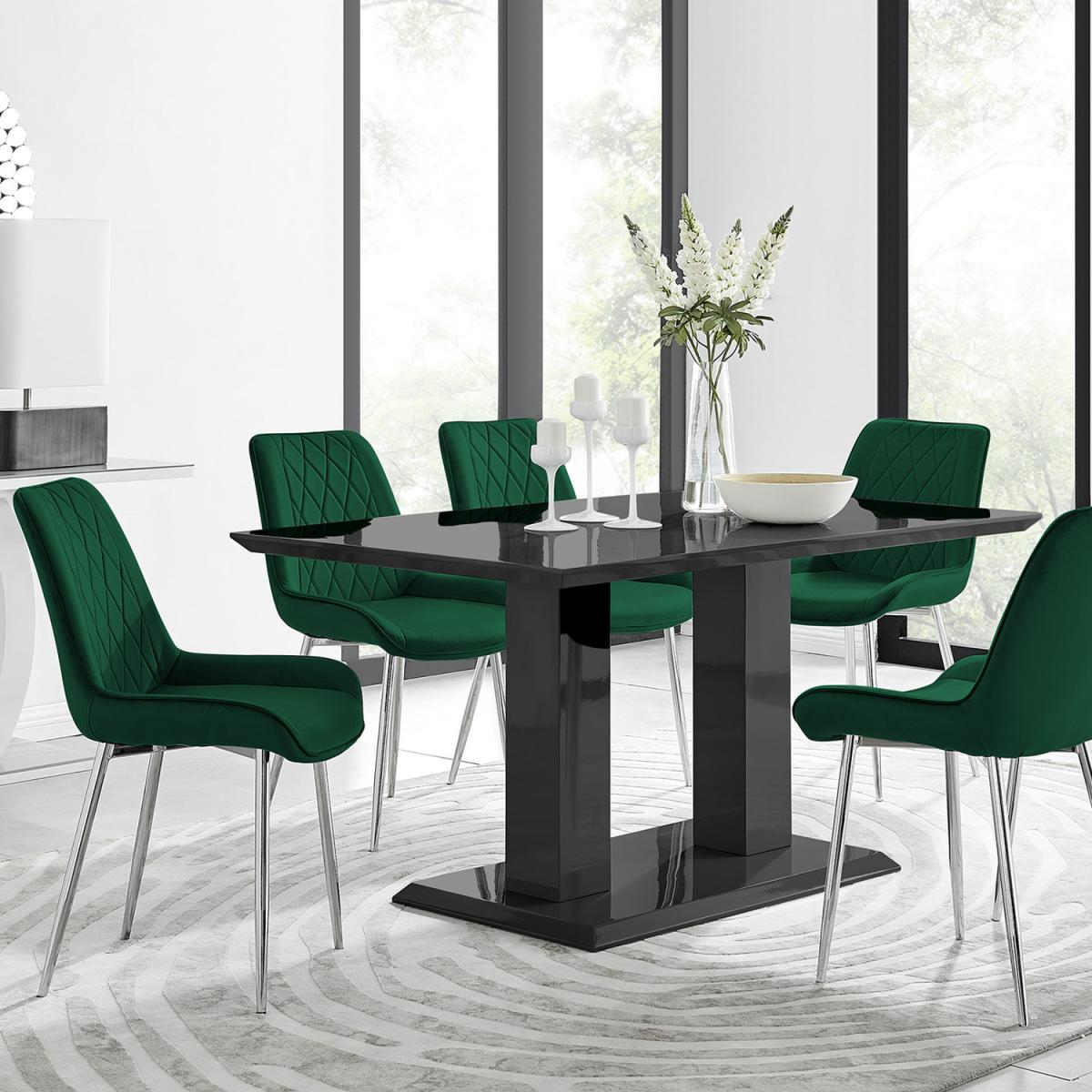The grand Imperia table combines both style and quality at a price that cannot be beaten! The dining table boasts a large 150x90cm surface leaving plenty of room for dining with guests. Beautifully finished with a slick high gloss lacquer surface the table is a real stand-out and would provide a modern look to any home! Seamlessly fitting into any dining area the Imperia table really is a must-have! The high gloss finish also allows an easy-to-maintain and clean surface to keep the table looking brand new for years to come! Modernise your dining area with our luxurious velvet upholstered Pesaro Dining Chairs.