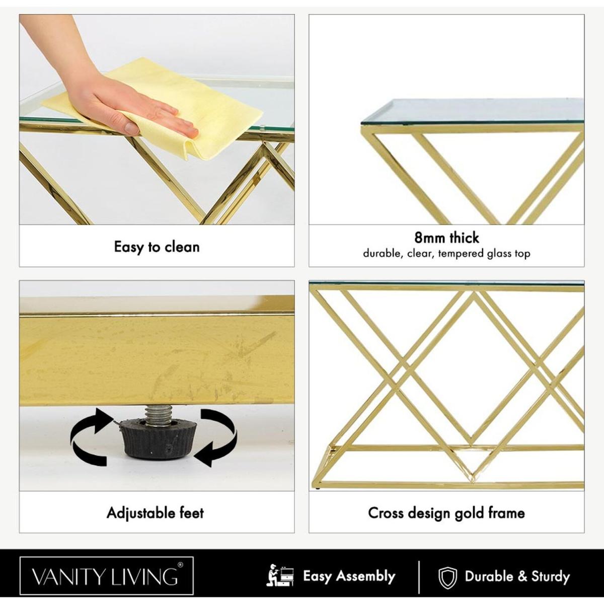 Imperia Gold Console Table, Hallway Table - Gold
