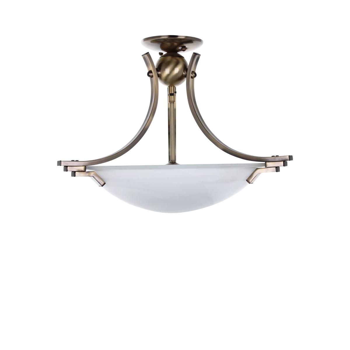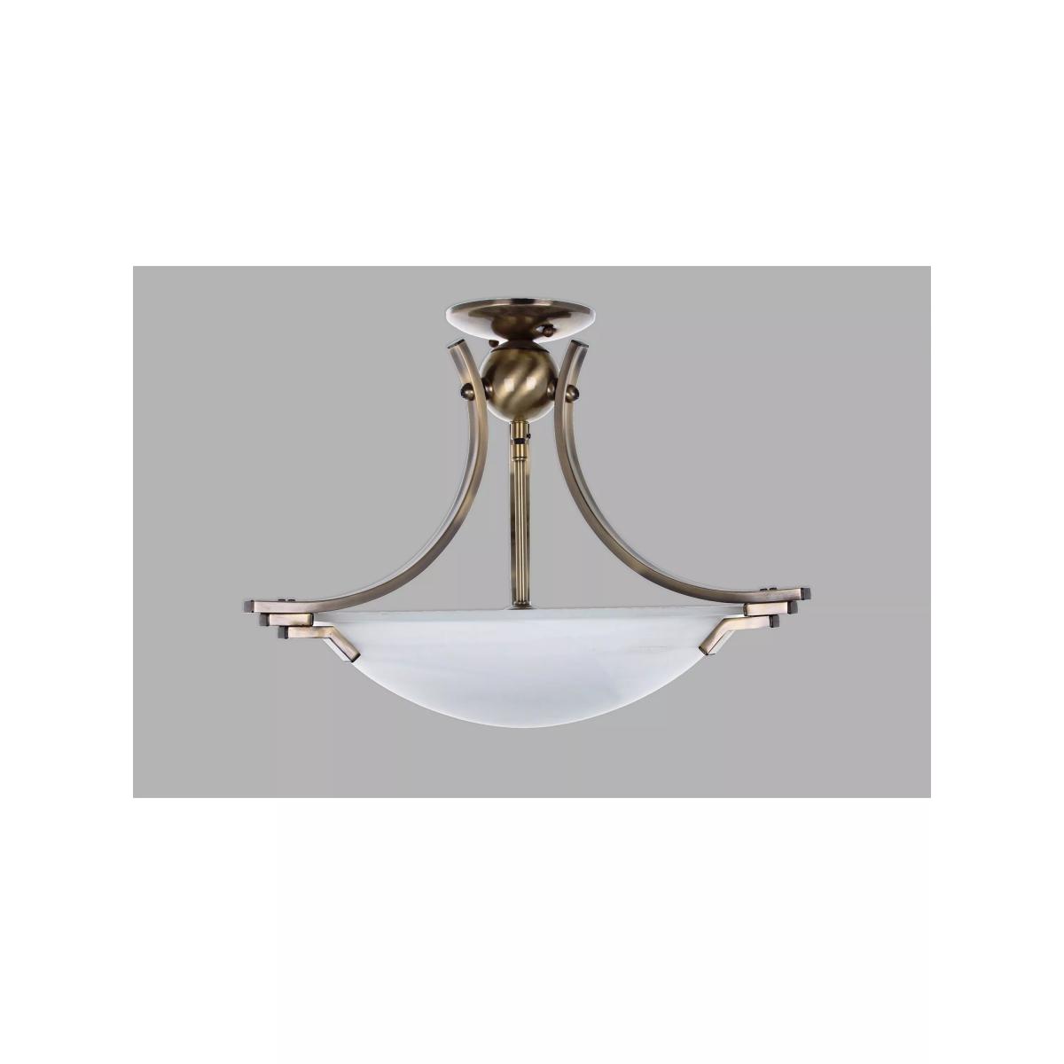 Amora semi flush ceiling light in antique brass with alabaster glass. Adds a touch of style and elegance to any room with its Art Deco finish.