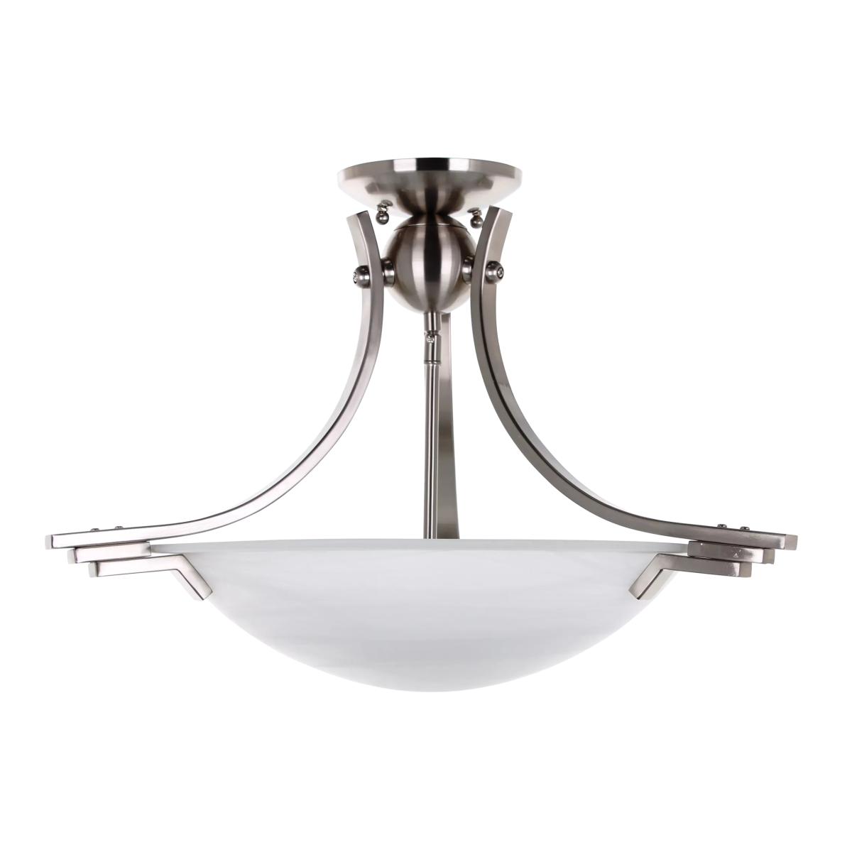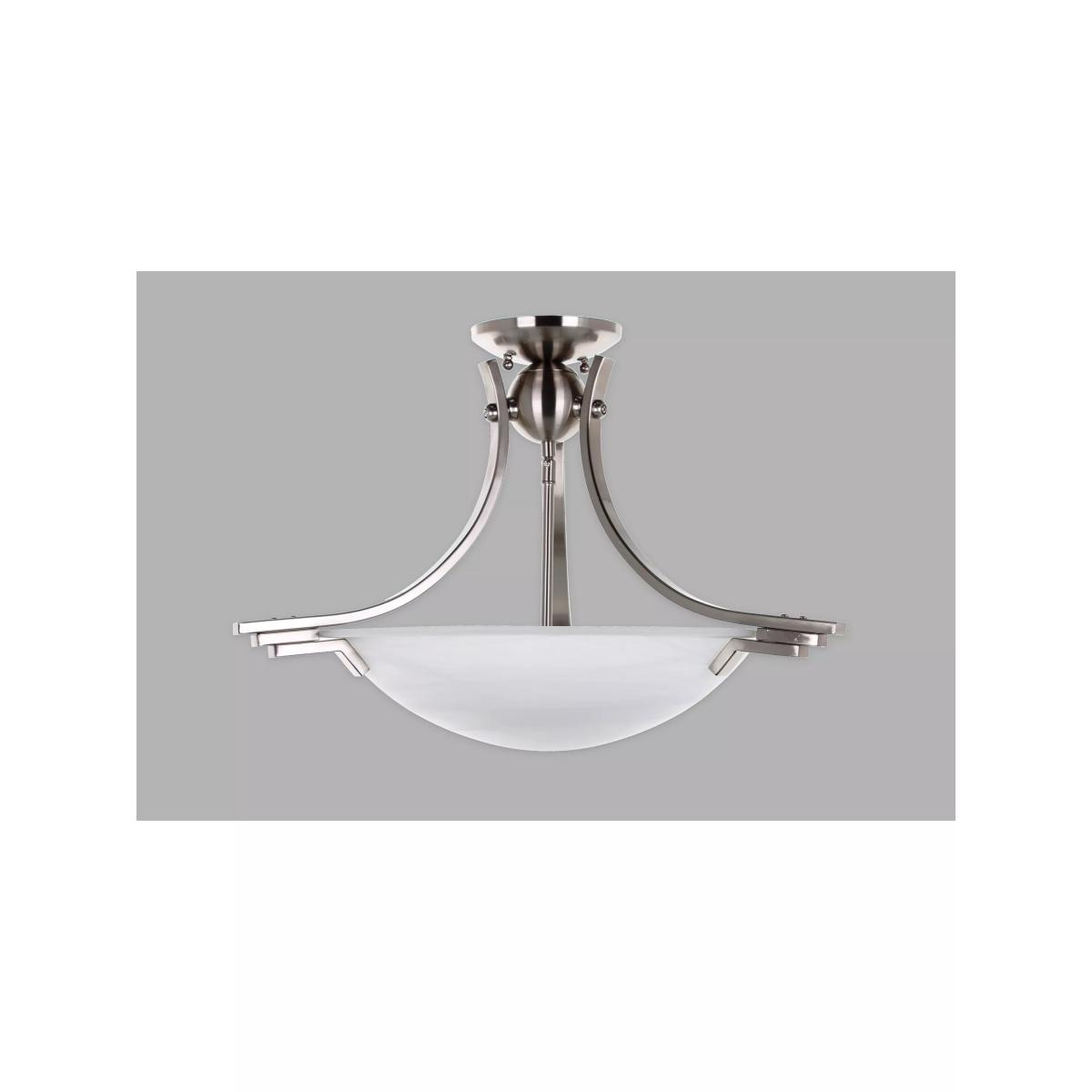 The Amora semi-flush ceiling light showcases satin nickel metalwork along with an alabaster glass shade. This Art Deco style light will add a touch of style and elegance to any room.