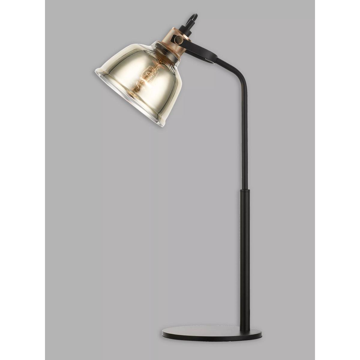 This table lamp suits modern industrial-inspired settings. The shade is made from glass and available in a gold or smoked finish and the brushed metal detail completes its restorative look.