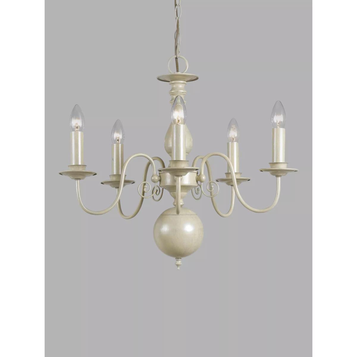 Keep things classic with this flemish-style chandelier ceiling light, which is made from sturdy metal and hand-painted in a warm finish. Five curved arms form its branches and when illuminated, it will spread light around your room. It's suspended from a height-adjustable chain and requires a total of 5 LED bulbs. Available in a range of sizes, as well as a matching wall light.