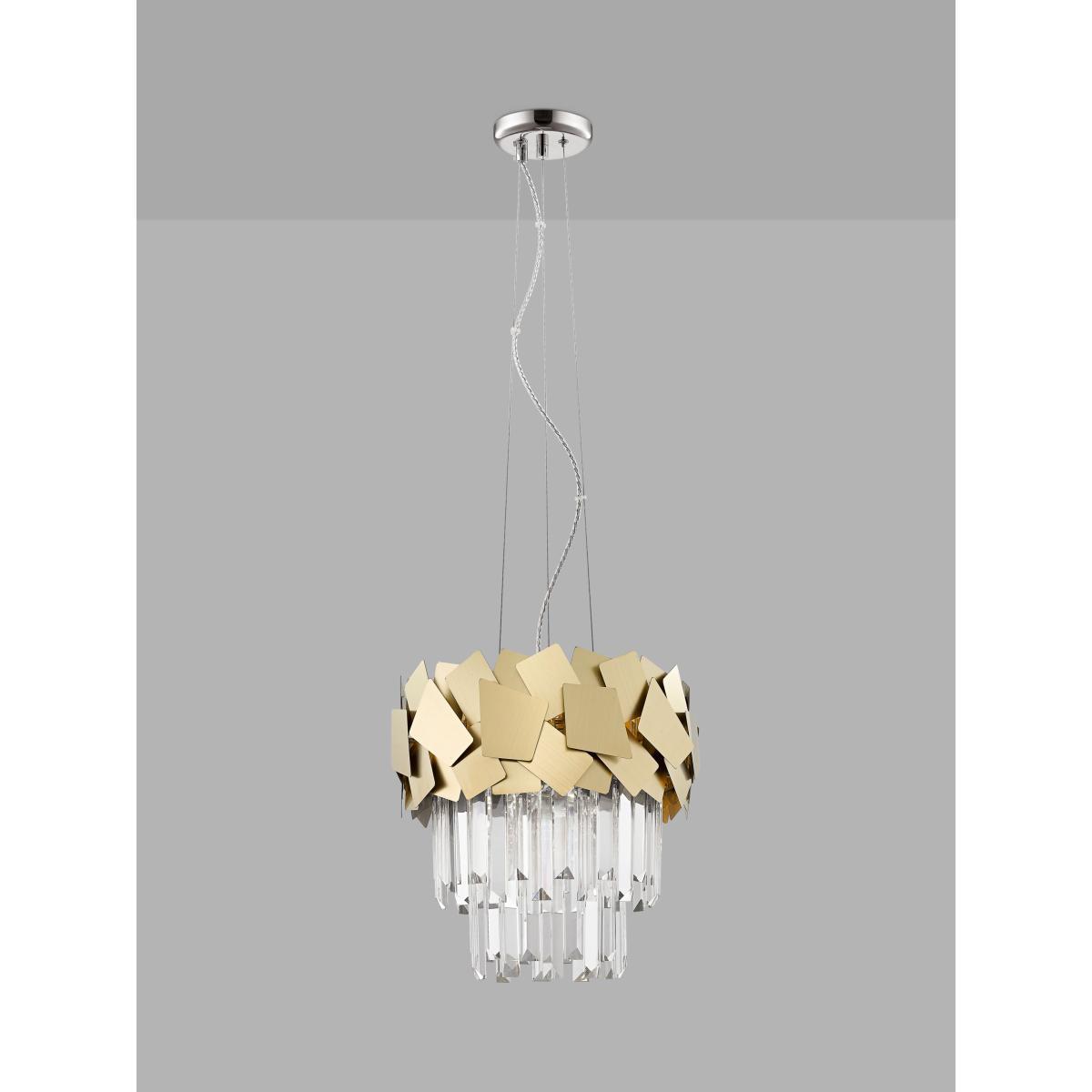 In a medium size that requires four LED bulbs, this pendant is made from two tiers of crystal glass rods that are surrounded by artistically arranged metal plates. Its modern-abstract form will draw the eye in your space, and it's suspended from a height-adjustable cable. When illuminated, it offers a warm glow of light.