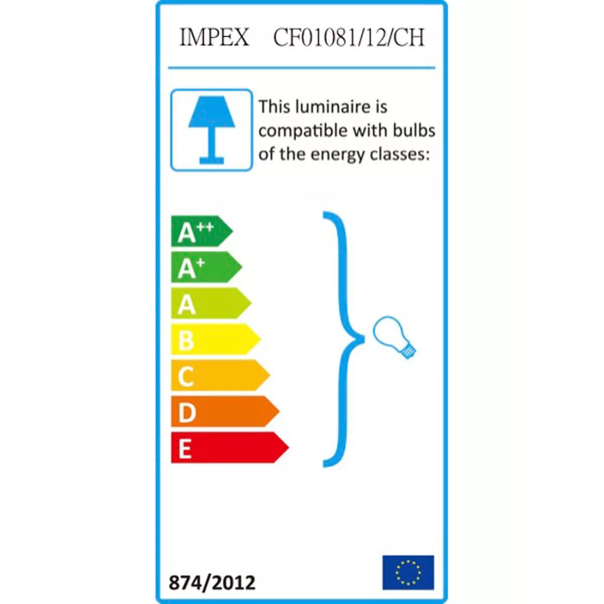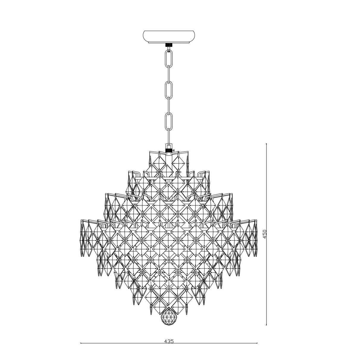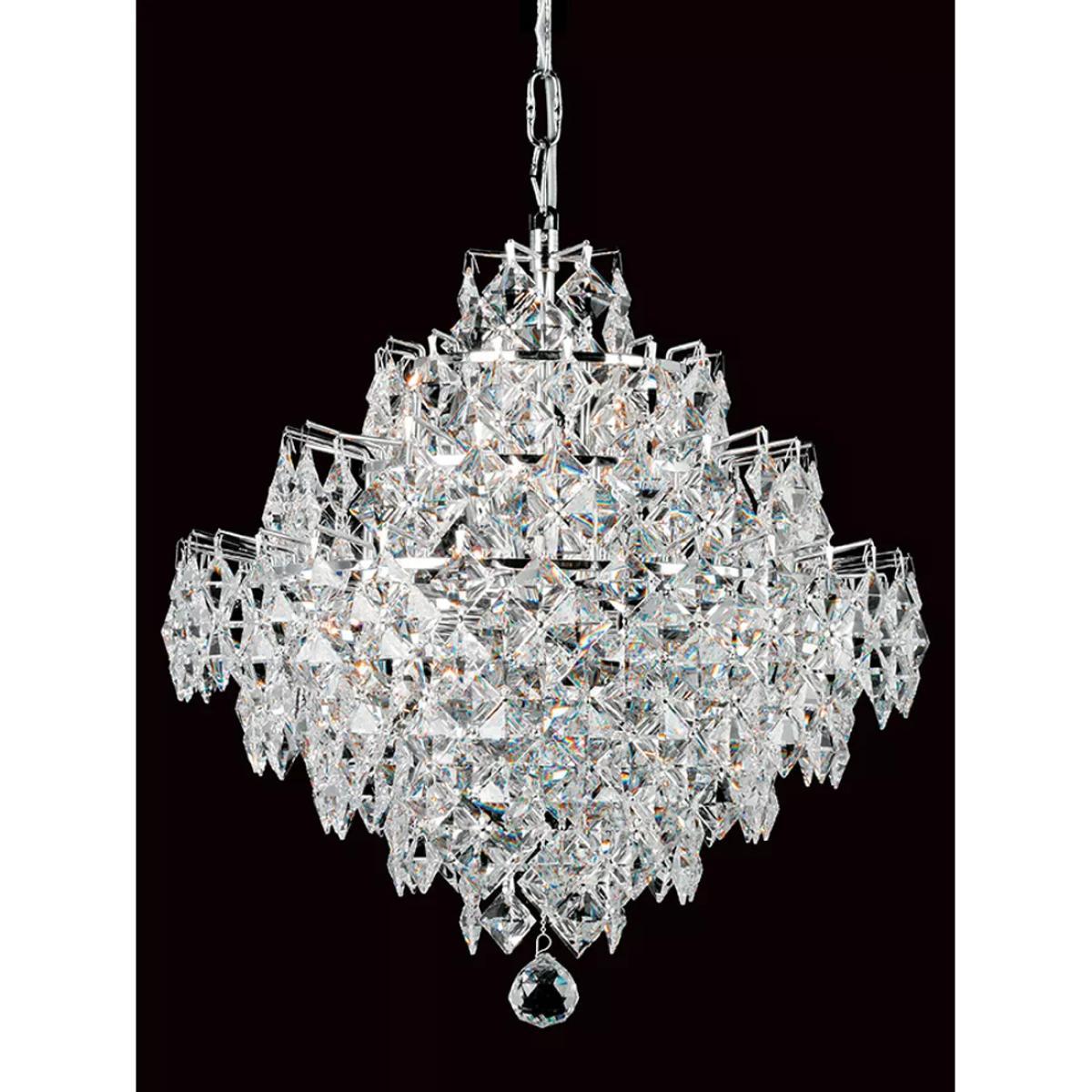 A statement piece for any room or hallway, this crystal chandelier from Impex's Diamond range is reminiscent of Art Deco design. Faceted diamond-shaped crystals glisten on a chrome frame, finished with a faceted lower finial.