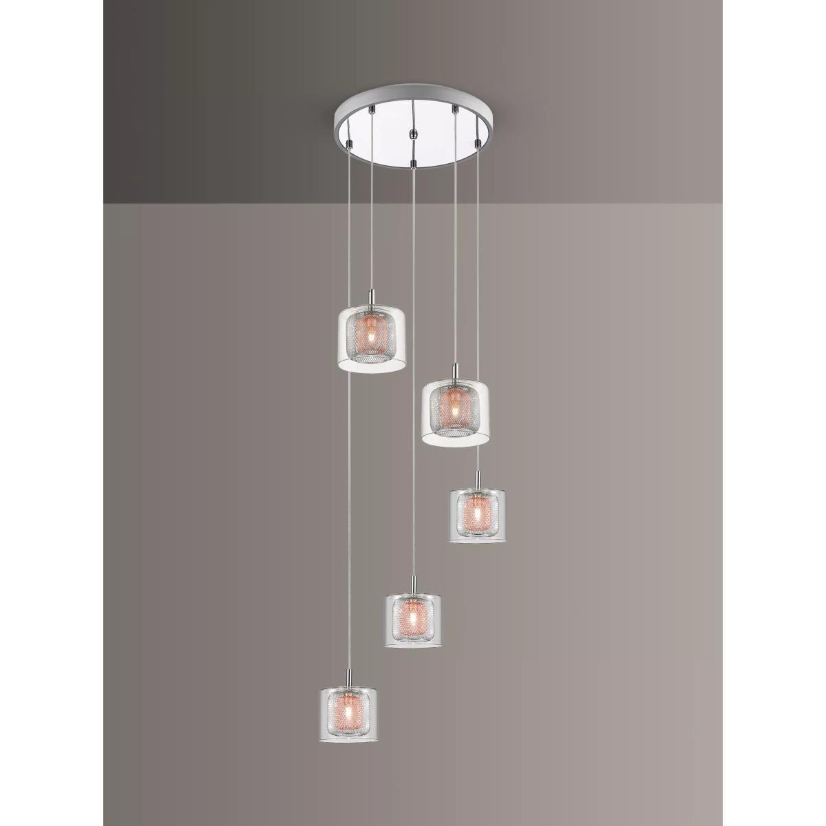 Impex Laure 5 Pendant Mesh Cluster Ceiling Light, Clear/Copper