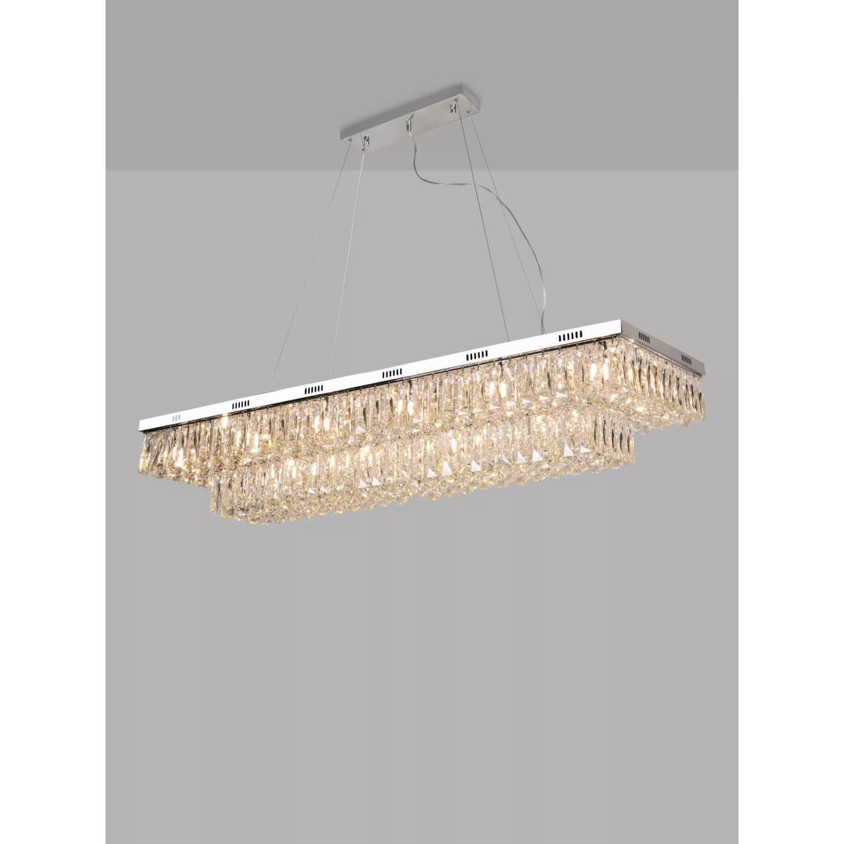Dramatic, decorative and sure to draw the eye, this ceiling light is designed with two tiers of stunning crystals suspended from a chrome frame. It's height-adjustable at the point of installation so you can position it perfectly in your space, and it radiates with dazzling light when illuminated. It's definitely one way to make your room a more eye-catching place.