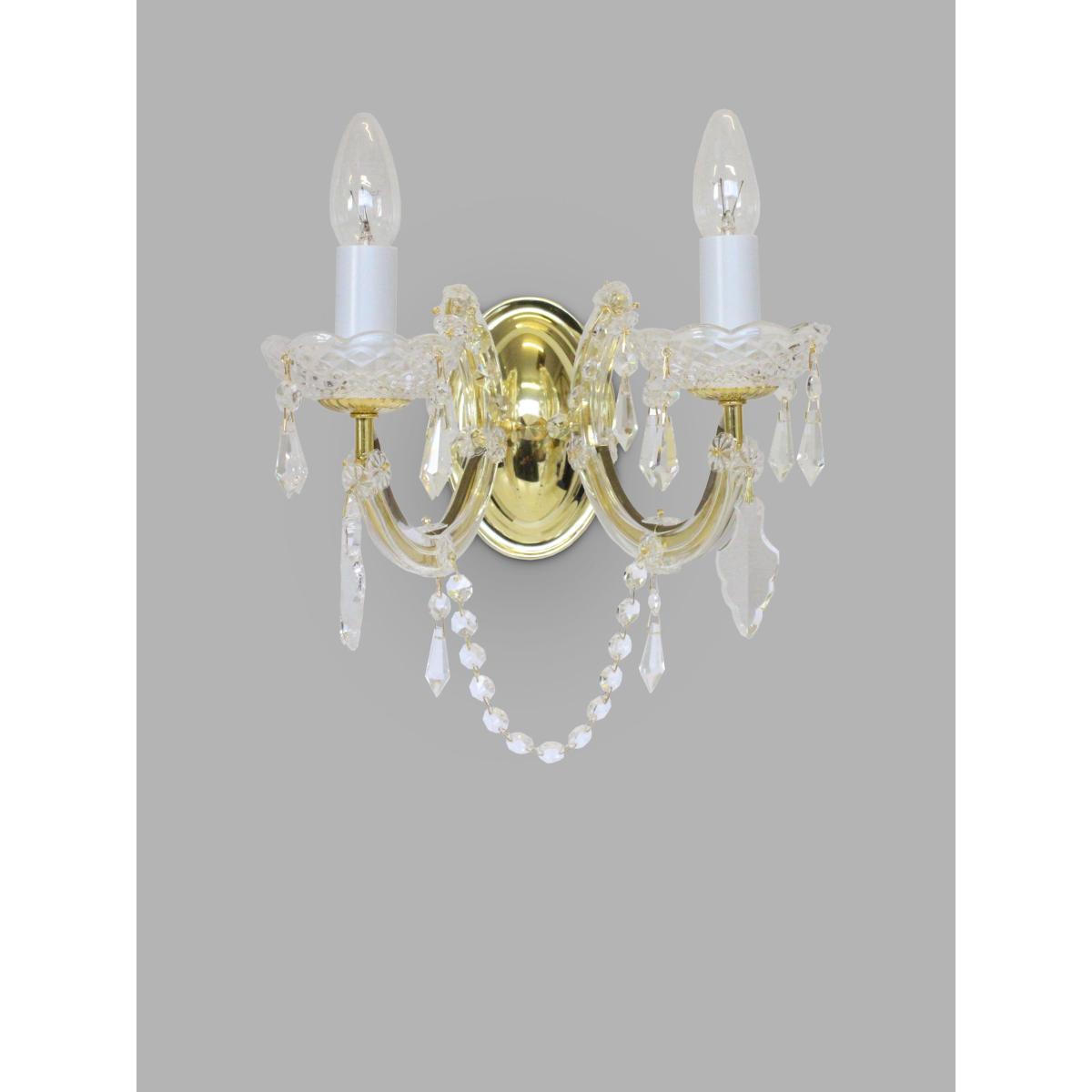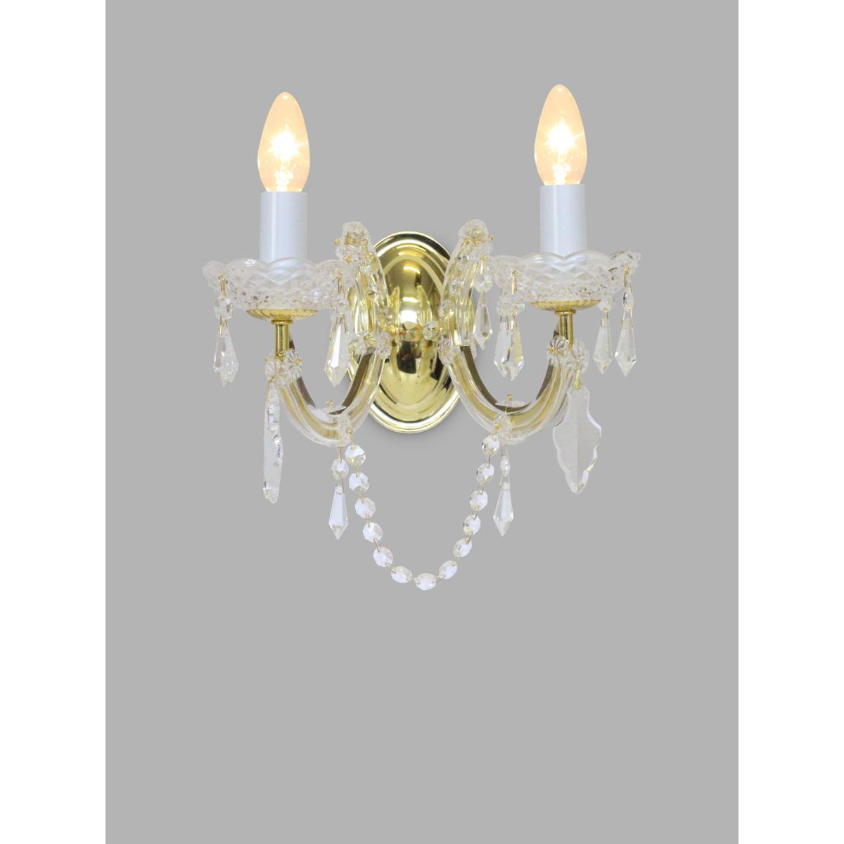 An ornate wall light with a distinctive candelabra style. Made from a combination of crystal glass beads and polished metal, it will draw the eye in your home and its two arms help to cast a direct glow of light up the wall. Two LED bulbs are required.