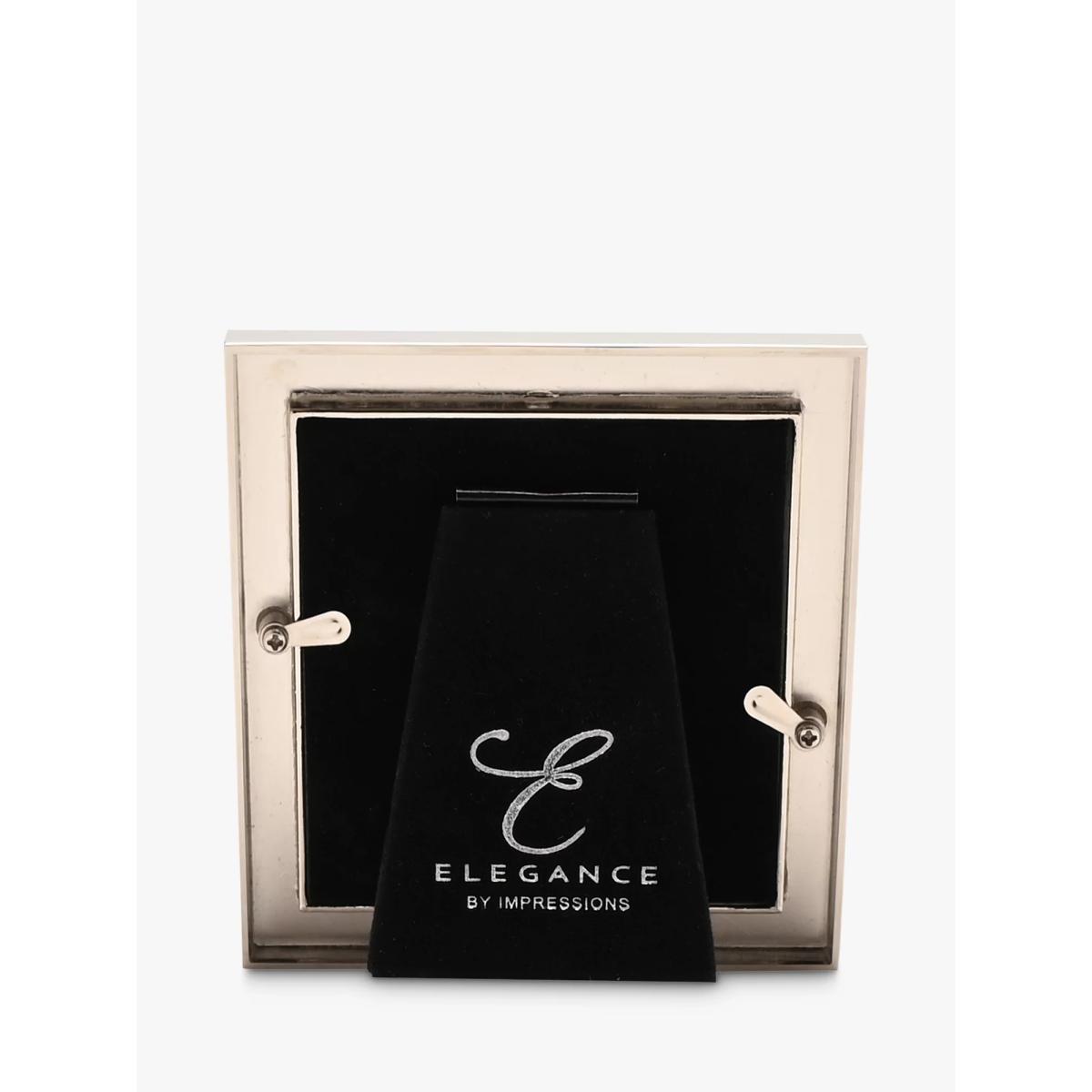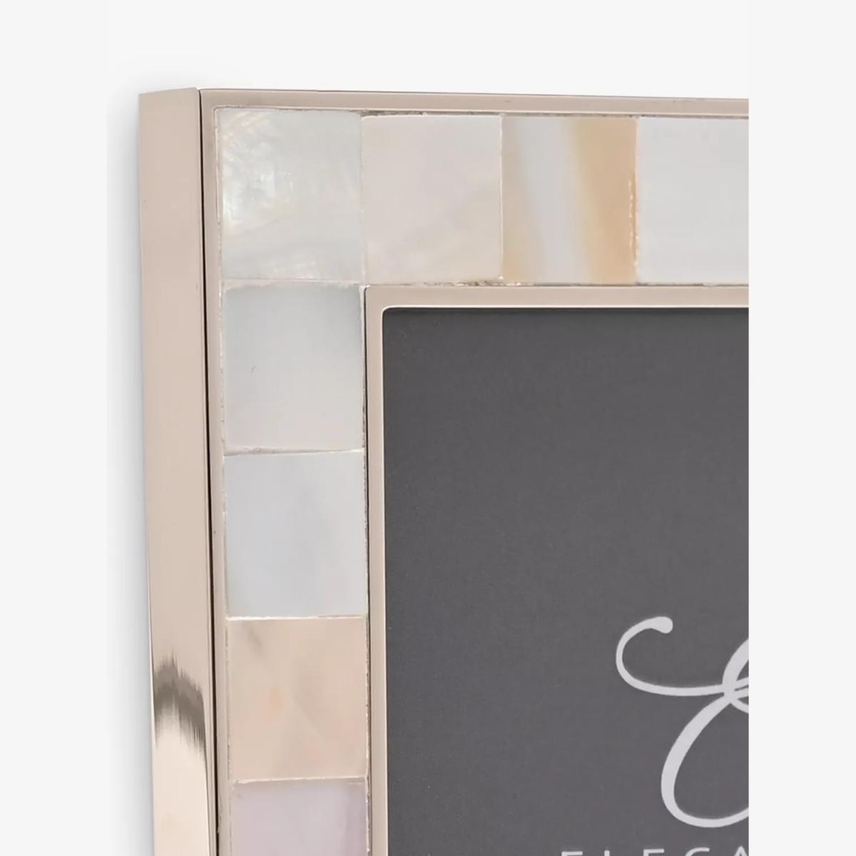 An Elegance nickel photo frame inlaid with mother of pearl. A true statement piece for treasured photographs. Complete with a black velveteen standing strut and luxury signature Elegance gift box.