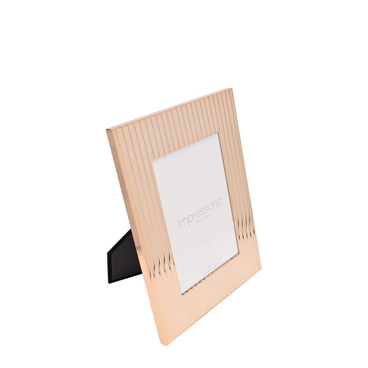 * Gold-painted finish * Striped design * Velvet stand * Portrait or landscape orientation * Available in multiple sizes The Impressions Gold Steel Photo Frame features a luxurious gold-painted finish and a striped design, adding a touch of sophistication to any space. It is ideal for showcasing cherished memories, making it a perfect gift for special occasions. Designed for display in either orientation, it includes a sturdy stand for easy placement on any surface. This photo frame is available in multiple sizes.
