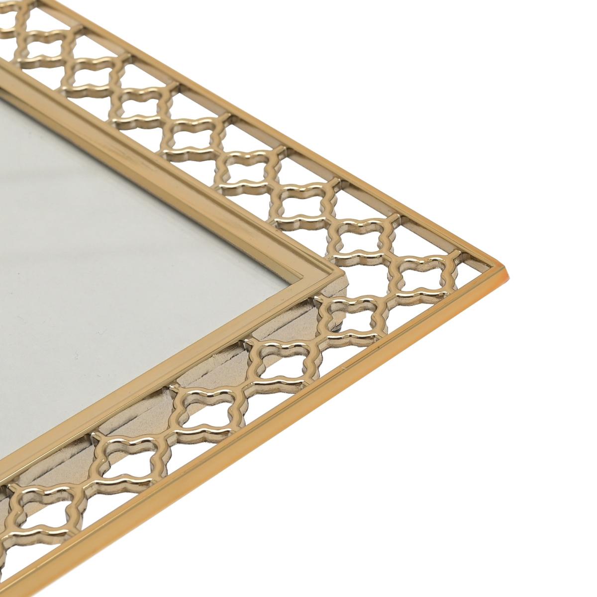 I love this frame’s lattice cut detail - it adds subtle texture and visual interest without overpowering the photo. It works particularly well in contemporary or glam interiors where a touch of metallic or intricate design elevates the overall look. You could also pair it with other gold or brass accents for a cohesive style. For practical styling tips, consider grouping several frames together on a mantel or gallery wall, varying sizes for a curated effect. Its clean yet decorative frame makes it versatile enough to suit both personal photo displays and more formal arrangements, adding a sophisticated finishing touch to any space.