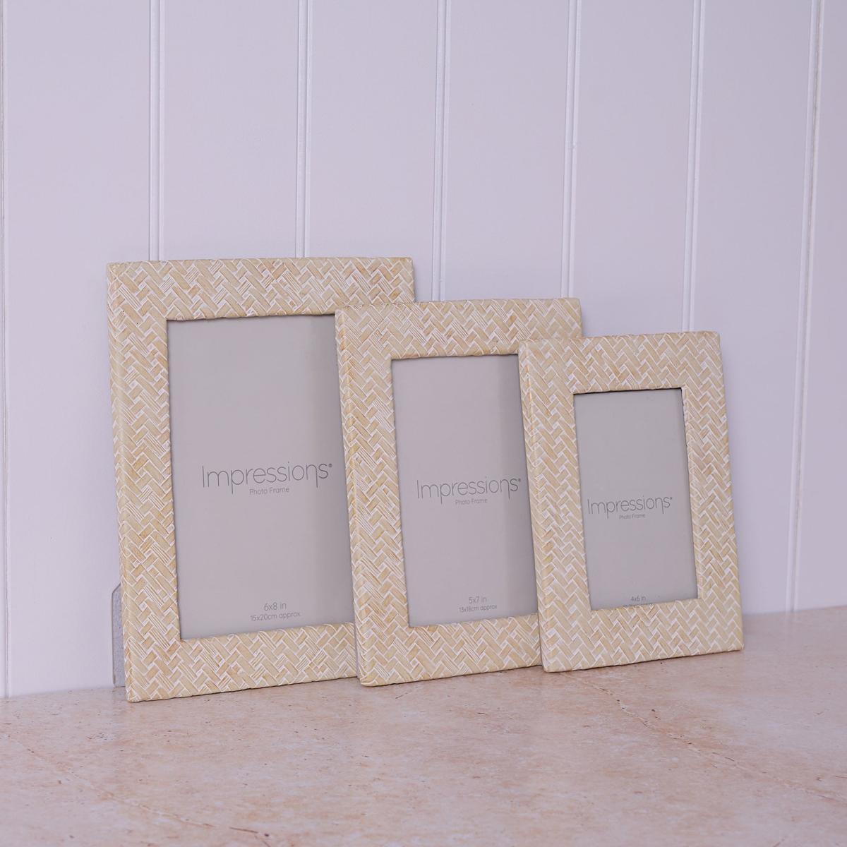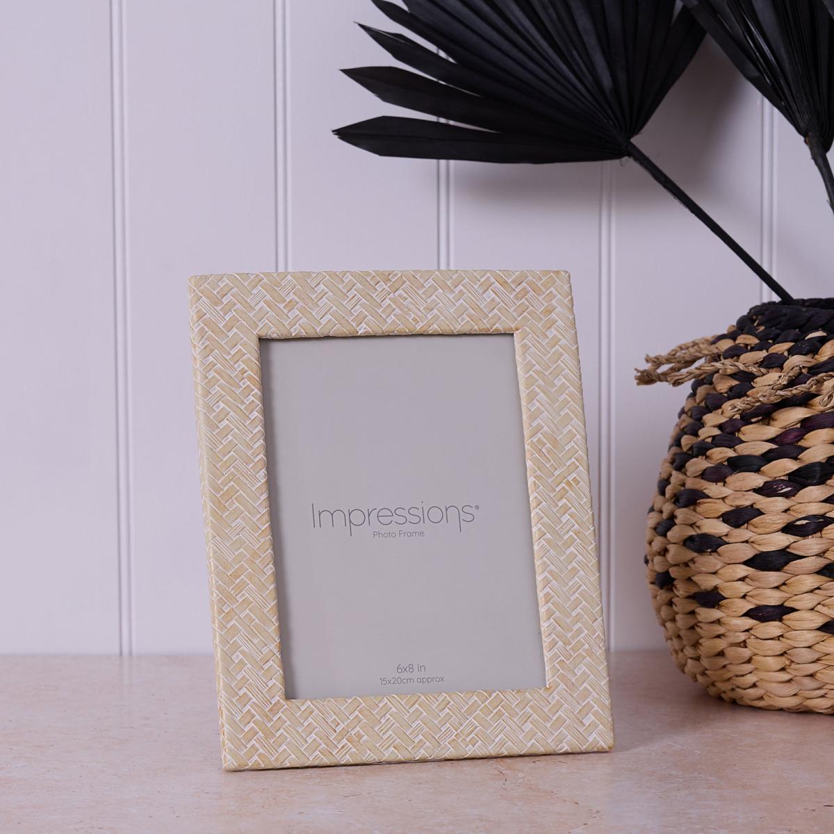 * Unique woven design * Neutral colourway * Versatile display in either orientation * Available in multiple sizes The frame features a neutral coloured woven effect with a textured touch, adding a unique and elegant look to any space. It is made from durable resin, ensuring longevity and a high-quality finish. Designed for versatility, this frame can be displayed in both landscape and portrait orientations, which makes it perfectly adaptable for showcasing different types of photos. This photo frame is available in multiple sizes.