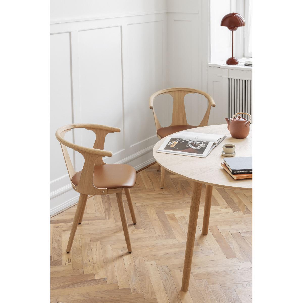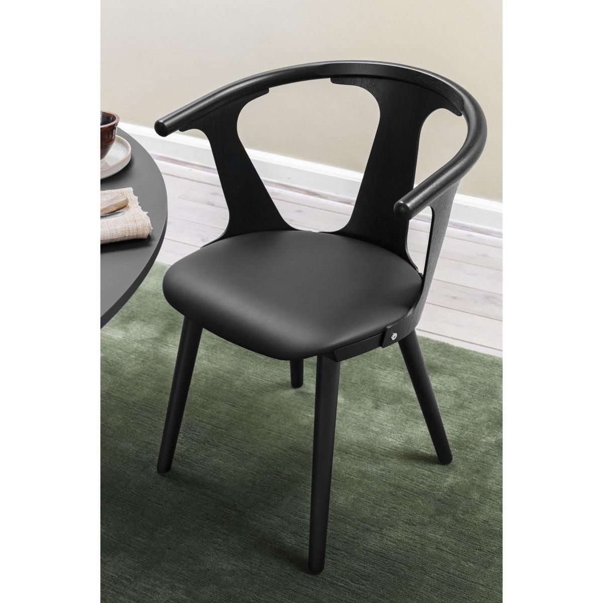 To create his "In Between" collection, the Finish designer, Sami Kallio, took inspiration from wooden furniture designed in the 50s by Hans J. Wegner, one of the founding fathers of Scandinavian design. The In Between armchair is therefore a respectful nod to the past, despite its resolutely forward-thinking design. Its sculptural backrest and armrests offer a real support to anyone who sits in it, while playing on alternating empty spaces and solid shapes. Hand-crafted in Denmark, the In Between armchair is the result of remarkable cabinet-making work, rooted in the Scandinavian tradition. Walnut is a tactile, warm material. On this model, the comfortable seat is padded with foam and upholstered in black leather.