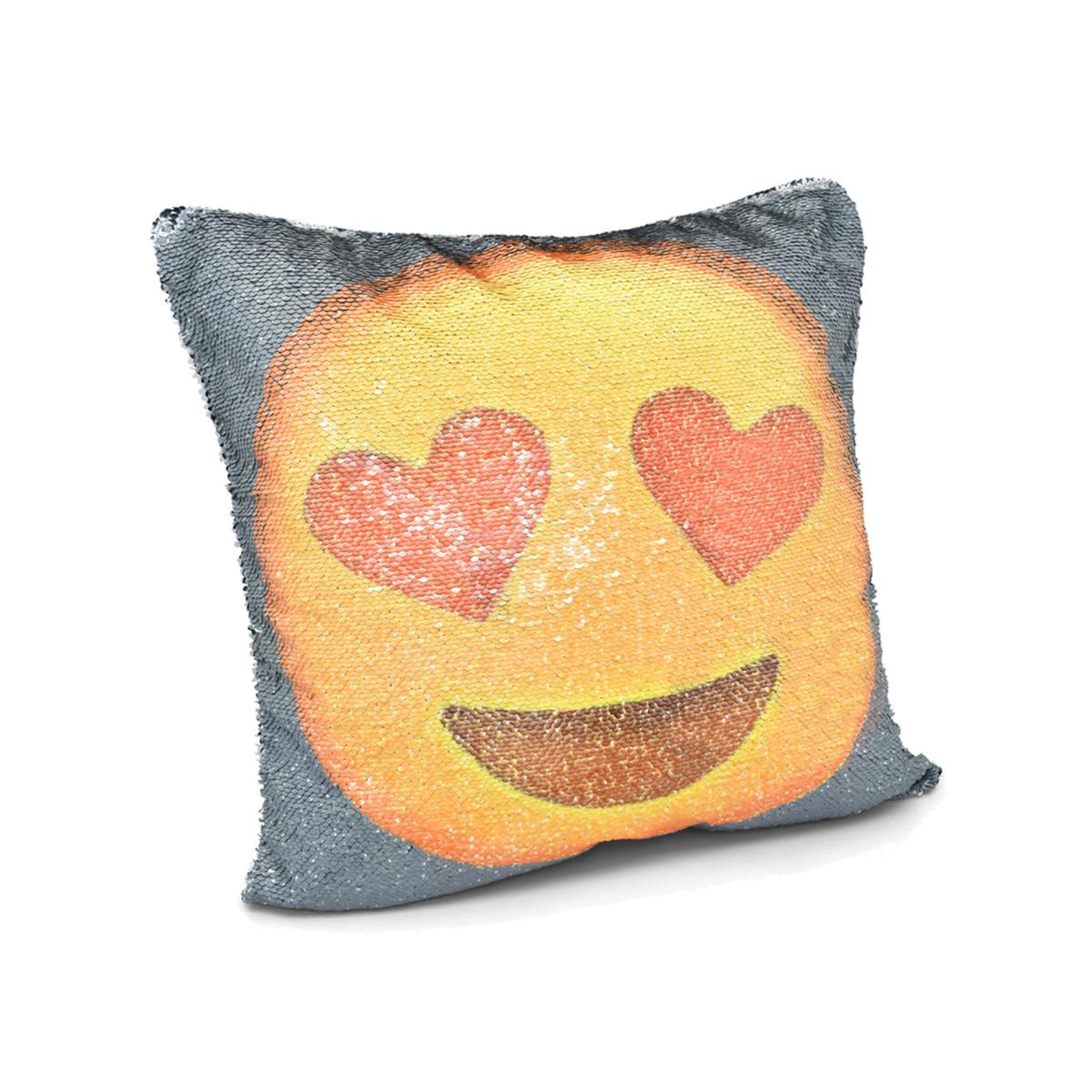 In Love Emoji Mermaid Sequin Fun Cushion - Orange