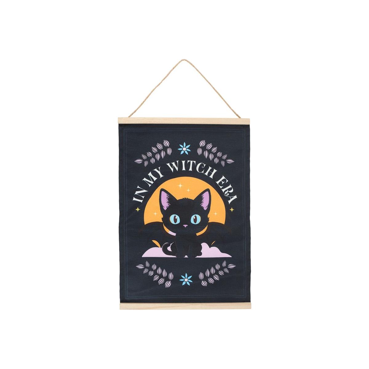 Proudly declare you're "In My Witch Era" and adorn your sacred space with this enchanting Fabric Wall Hanging, featuring a captivating bat-winged black cat! This unique piece of wall art is perfect for anyone embracing their inner magic, or for those who simply adore a touch of mystical, gothic charm in their home. The design showcases a stylised black cat with adorable bat-like wings and big blue eyes. Above this enchanting feline, the empowering phrase "IN MY WITCH ERA" is beautifully displayed in a distinctive, arched font. This wall hanging comes ready to display adding to its rustic yet magical appeal. It's a wonderful way to add personality and a focal point to any room-be it your bedroom, living area, altar space, or office.