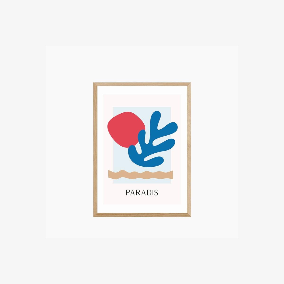 Add a touch of contemporary style to your walls with this abstract paradise print. Inspired by diverse design styles including Minimalism, Danish Modern and Mid Century Modern, this print gives your room a bold look that never goes out of style. Perfect as a centrepiece over a sofa or mantelpiece. Only giclee printing processes are used for this print resulting in the highest quality museum-level colours and sharpness. Choose between a number of different coloured frames and three sizes for the perfect print for your space.