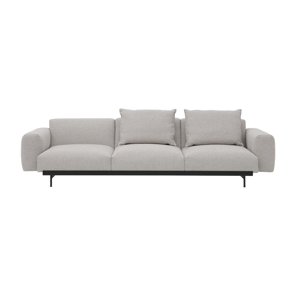 The In Situ sofa combines the generous sizing of traditional Italian sofas with the elegant simplicity of Scandinavian design, making it the heart of any space. Norwegian design studio Anderssen & Voll has created the In Situ sofa to be an island of comfort, opting for generous dimensions with a deep and soft seat. Despite the large volume of its seat, its silhouette remains elegant, delicate and sophisticated. The linear silhouette is emphasised by a black metal bar which crosses the front of the sofa. The slender and elongated feet reiterate the lightweight visual created by the sofa. The clean lines showcase the quality of the premium coverings in fabric or leather. The In Situ sofa can be accessorised with a set of mobile cushions (backrest cushion and lower back cushions sold separately. PLEASE NOTE. The small mobile cushions that can be seen in the photo aren't included (backrest cushion and lower back cushions sold separately).