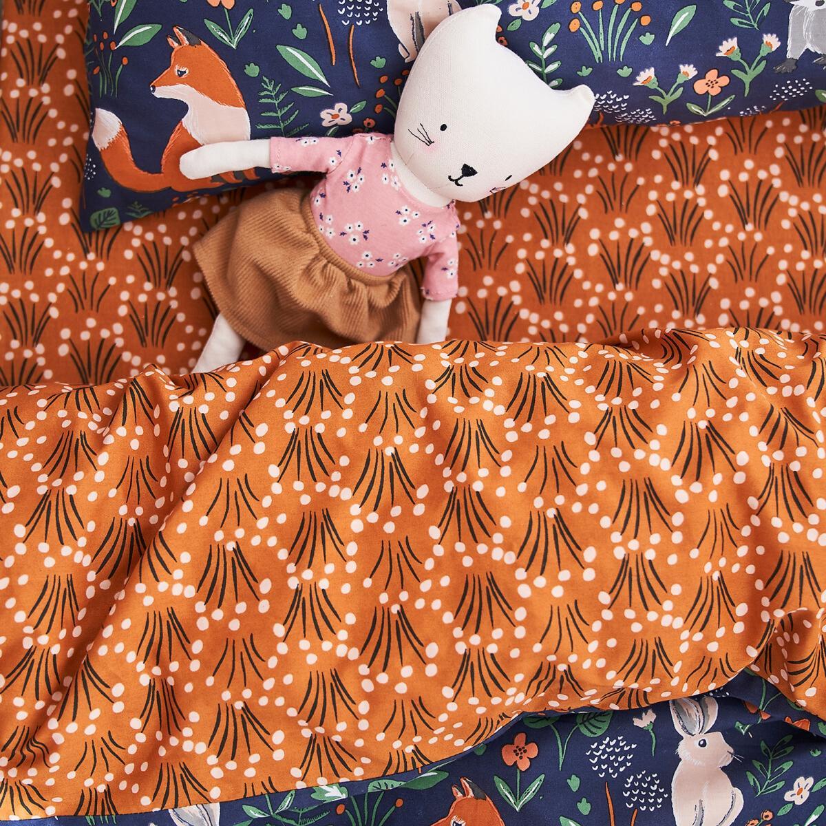 I love this duvet cover for its soft, organic cotton fabric and charming woodland-themed design, making it perfect for adding a cosy, natural feel to a child's room. It works particularly well in contemporary interiors with pastel tones or neutral palettes, but can also introduce a playful touch to more vintage or Scandi-style spaces. For styling, layering it with a textured throw or mix-and-matching with other woodland-themed accessories can create a warm, inviting nursery or children's bedroom. Pairing it with natural wood furniture or colourful, contrasting cushions will help highlight its earthy charm and make the space feel both cheerful and calming.