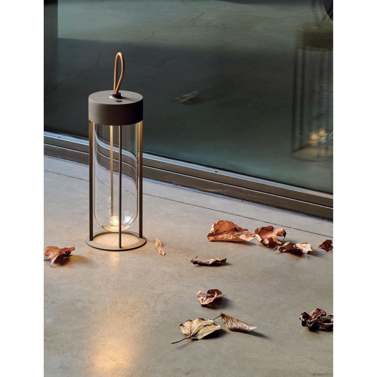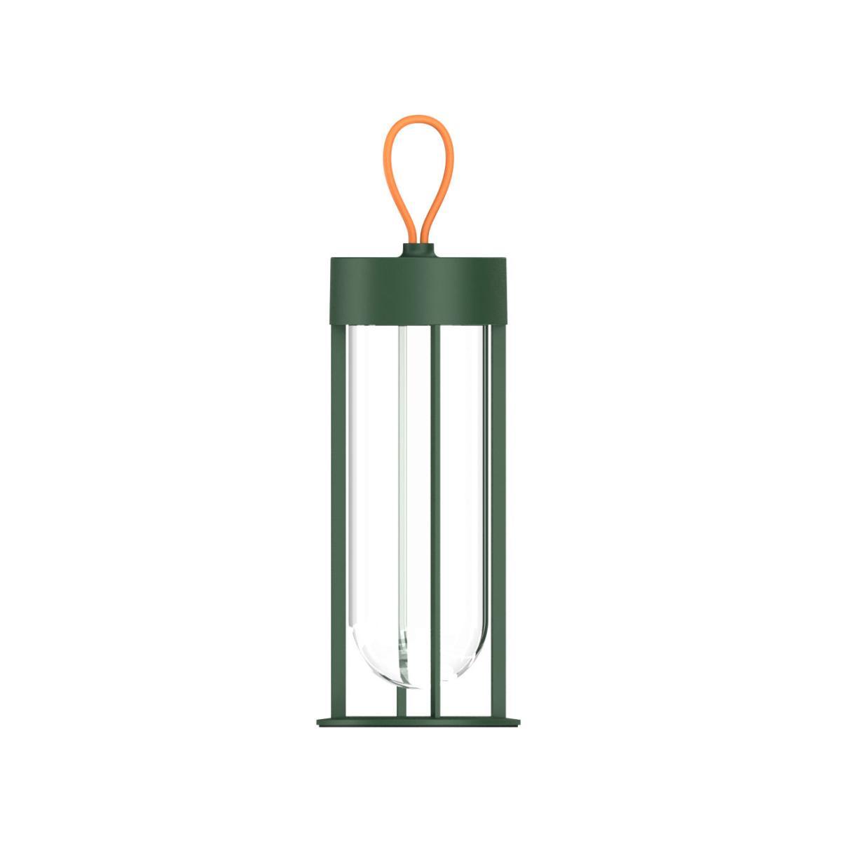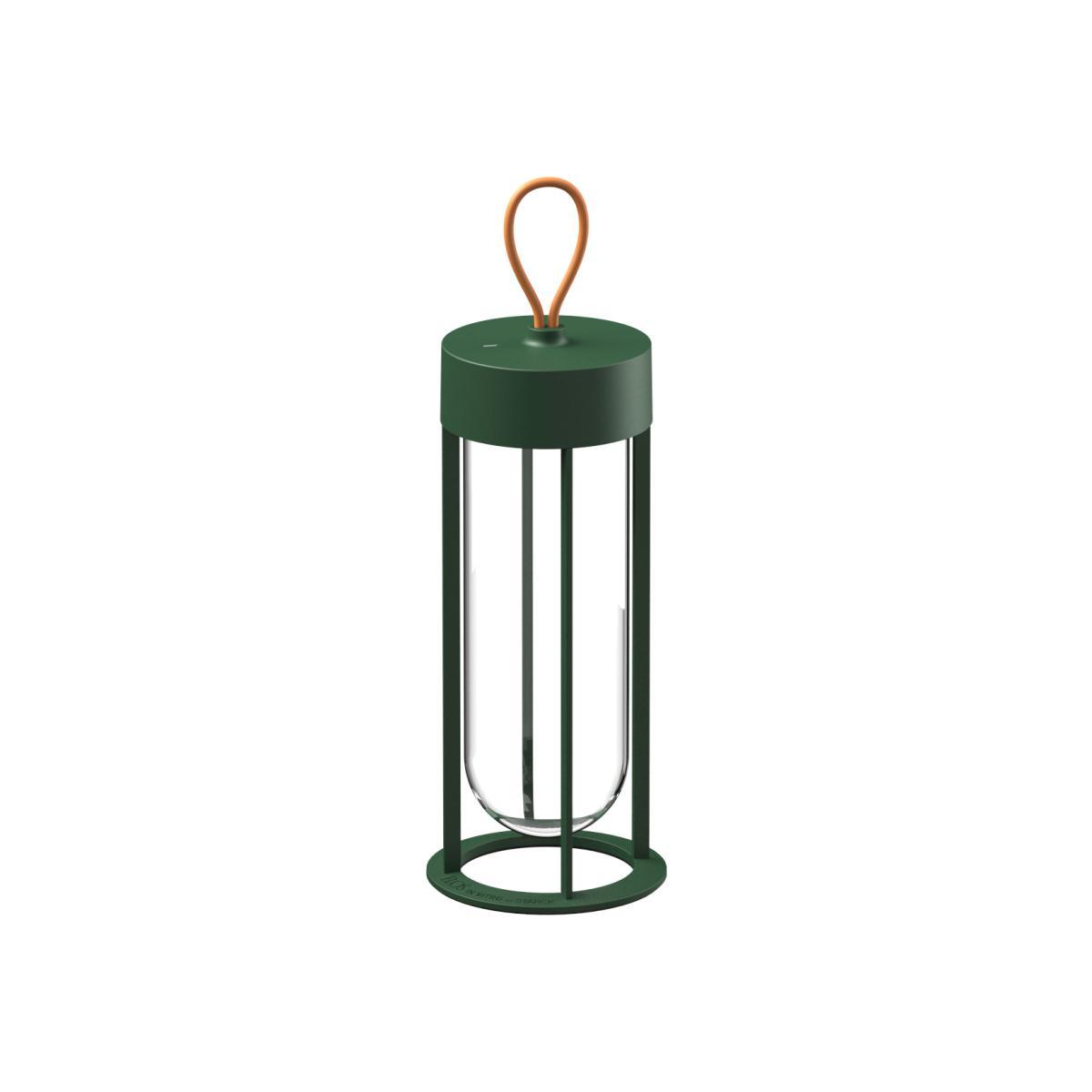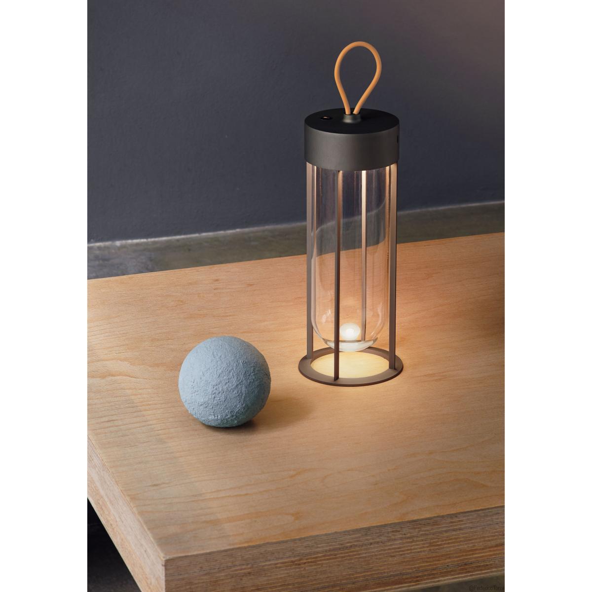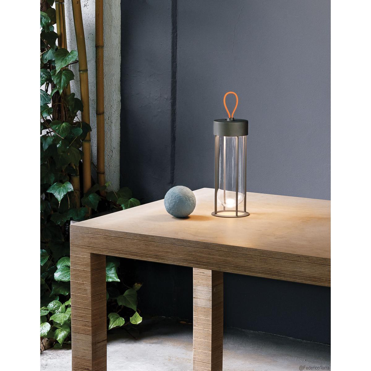 Philippe Starck gives us a contemporary, refined version of the traditional lantern. Devoid of superfluous details, In Vitro Unplugged consists of an aluminium structure within which is embedded a transparent glass capsule. Its design is based on the idea that the glass globe that traditionally protects light bulbs, made unnecessary by LED circuit technology, can now become an integral part of the lamp itself. The result is particularly light and poetic. Philippe Starck: "The collection of outdoor lamps created for Flos is a minor miracle. Historically, the bulb has been protected by a glass globe. Today, it disappears in favour of light itself. It’s the poetic, surrealist idea of dematerialised architectural lighting and the memory of the space occupied by light. "Invisible, the ultra-slim LED light source is placed under the aluminium head. Edge Lighting optical technology ensures perfect light uniformity. Wireless, this portable lamp is weather-resistant and can be used indoors and out. It’s easy to carry thanks to its orange silicone handle. Offering 3 levels of light intensity, it can be placed on a piece of furniture or on the floor. This small mood lamp is ideal for use in a lounge or hallway, and is perfect to create soft mood lighting on a table when eating outdoors. This cordless LED lamp with integrated battery is recharged by Micro USB-C cable included (battery life: up to 6 hours). The In Vitro Unplugged cordless lamp comes in a superb colour palette.
