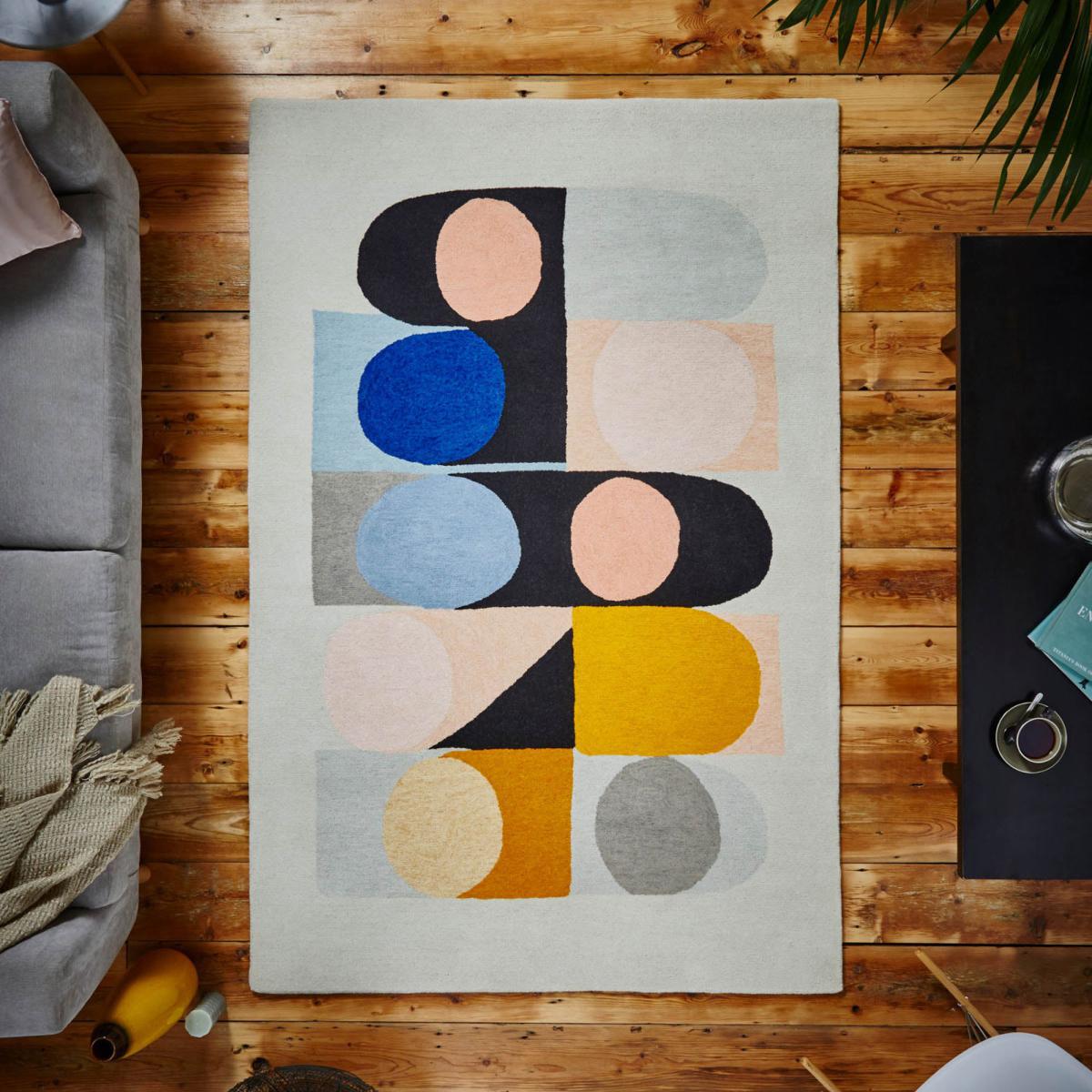 I love this rug because of its subtle yet playful design, which can effortlessly add visual interest without overwhelming a space. It works well in modern, Scandinavian, or eclectic interiors, especially when paired with neutral or pastel palettes to highlight the soft colours. Practical styling tips include using it in living rooms or bedrooms to create a cosy vibe, or layering it with larger, more neutral rugs for added texture. Its versatile design makes it a great choice for creating a focal point or softening harder surfaces like wood or tiles. Keep accessories minimal to let the print stand out and consider pairing it with simple, clean-lined furniture for a balanced look.