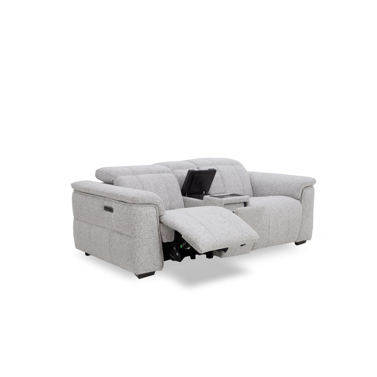 Showcasing contemporary style, modern comfort and a whole host of power relaxation features, our Inca range is exactly what you’ll want to come home to at the end of the day. This collection makes it so easy to customise your comfort with perfect-position headrests, plus the power seat recline and footrest elevation can be operated independently. The corner sofa even has double power recliners. And with deep seats, wide padded arms and stylish feature stitching, you’ll love the look too. Offered in both soft fabric and 100% leather, the Inca collection of sofas, armchairs and footstools is beautifully handcrafted and exclusive to Furniture Village. This fabulously comfy three-seater sofa has everything you need for a relaxing evening at home – power recliners, power headrests and even a console with a fridge. Why you’ll love it Striking contemporary sofa style that’s all about comfort. Made for relaxing – the central console conceals a fridge. With power recliners and perfect-position power headrests as standard. Not reclining? You’ll still love this sofa’s pocket-sprung seats and roomy proportions. You can adjust the back and footrest recliners independently for relaxation your way. Discreet USB charging ports. Recliners have safety locks for peace of mind. Upholstered in soft fabric in a huge choice of colours. Also offered with 100% leather upholstery. No handy power source? This sofa is available with battery-powered recliners. Inca is a fully modular range. Made by hand exclusively for Furniture Village. This 3-seater fabric power recliner sofa with built-in fridge is part of our Inca range. What you need to know Medium comfort level. Seat suspension: pocket spring. Seat cushioning: foam and Dacron. Cushioning is fixed. Back suspension: webbing. Back cushioning: fibre. Cushioning is fixed. Feet are removable. The battery-powered version of this sofa does not have a fridge console or USB charging. Please allow time for new recliners to ease. Minor gaps are necessary to ensure ease of recliner motion and may be exaggerated depending on floor type. Flattening and shading of heavy wear areas on pile fabrics is unavoidable. Clean regularly using a soft brush or vacuum with the curtain attachment. Deal with any spills promptly. Professional cleaning advised for oil- and grease-based stains. Please read our upholstery care guide for more advice.