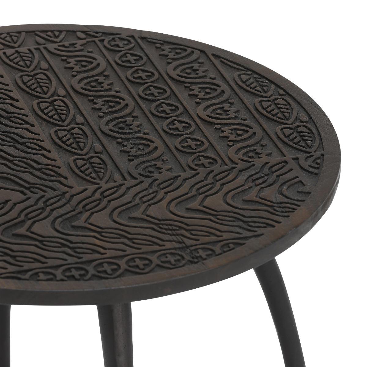 Design. Intricate detailing is the main eye-catching point to the Inca Mango Wood Side Table, with a beautiful Aztec style pattern to the top of table. The thin, spayed metal legs ad to its interesting design, not to mention the gorgeous, rich colouring and graining of the mango wood to make this piece truly spectacular. Whether the Inca Mango Wood Side Table is placed in your living or dining space, it is sure to make a statement and spark a conversation.