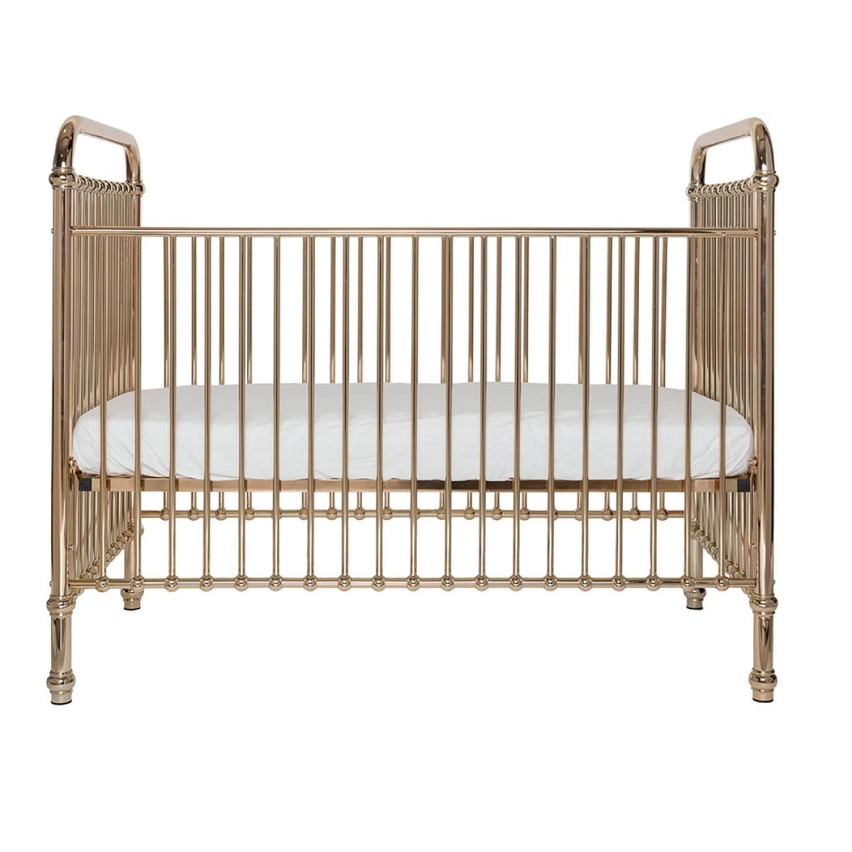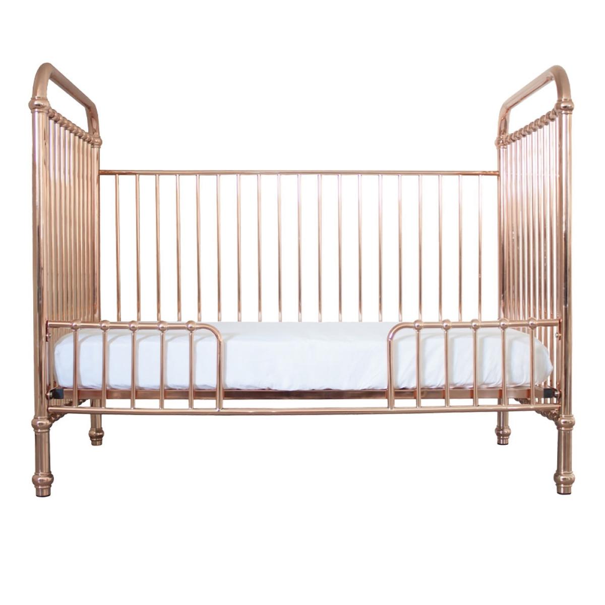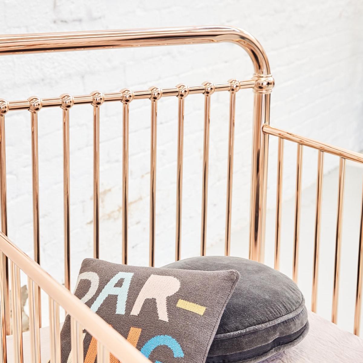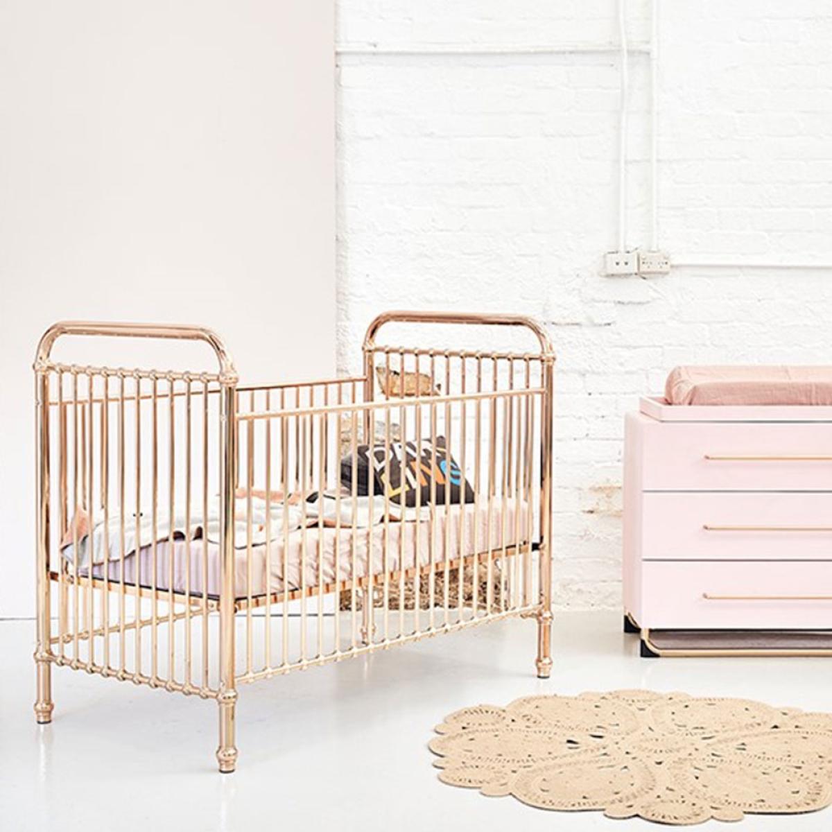 If you're looking for traditional wooden nursery furniture. This isn't for you! The Incy Interiors Ellie Cot is a little bit different! Expertly crafted from aluminium metal, the strong and durable frame has been given a lustrous rose gold finish to really make this piece standout in the nursery. You won't be able to resist it's sparkling charm! Using non-toxic, water-based chrome plating, the metallic finish won't chip or tarnish over time and is completely safe for babies and tots. If you're going for glitz, glamour and elegance, there is nothing quite like this! Featuring two mattress levels, easily adjust the height depending on your babies development. When they're newborn the top level is perfect - you can fuss over them without straining your back and then when they're starting to lift themselves up, simply move the mattress to the lowest level to keep them safe and secure. Don't want to part with this dazzling design? Add the conversion kit to turn the frame into a toddler bed once the cot stage has been outgrown!.