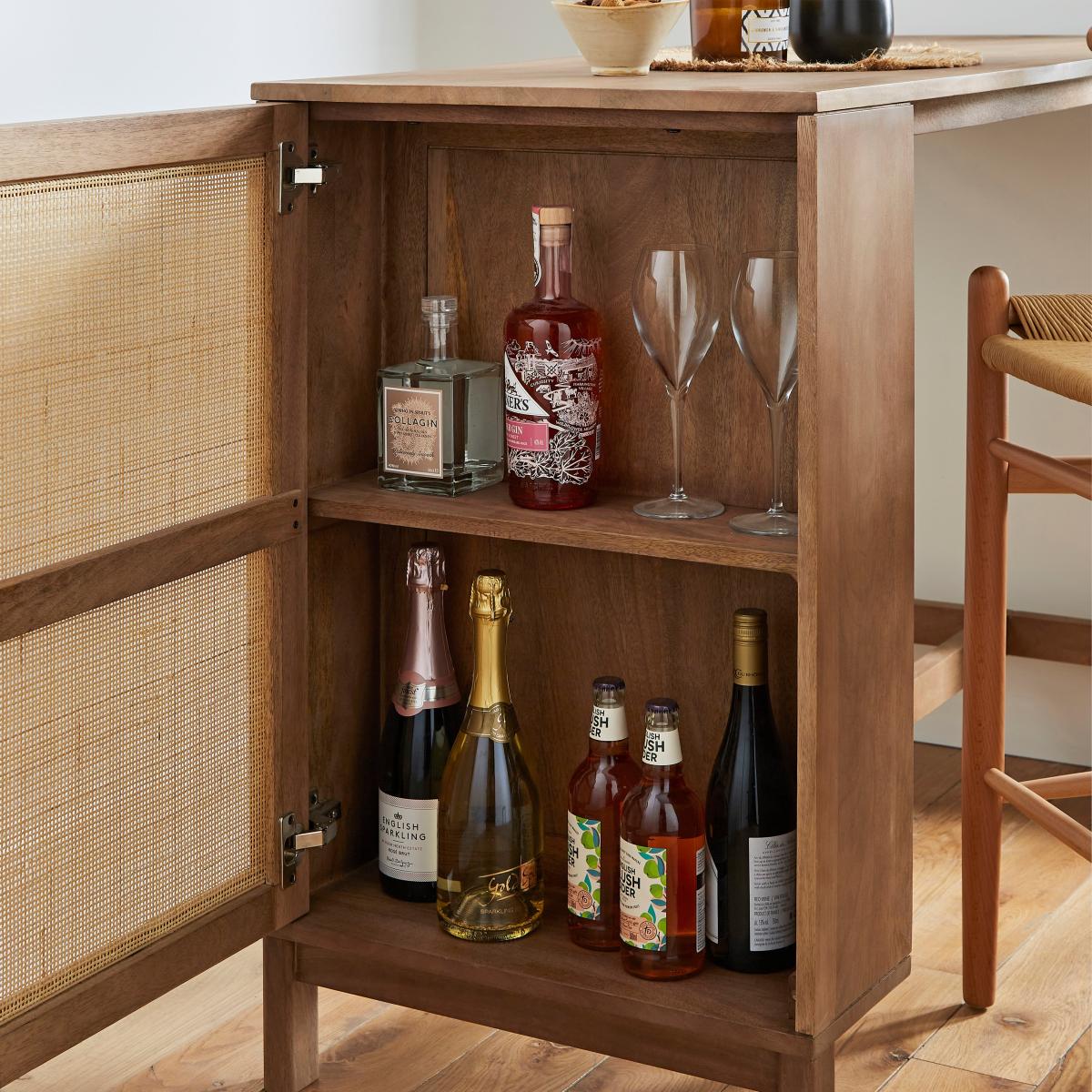 Show off your style with this 100% mango wood bar table. With a spacious cupboard with 2 internal shelves for extra storage, you'll have easy access to all your cocktail making supplies to entertain the night away, making this both a stylish and practical addition to your home.