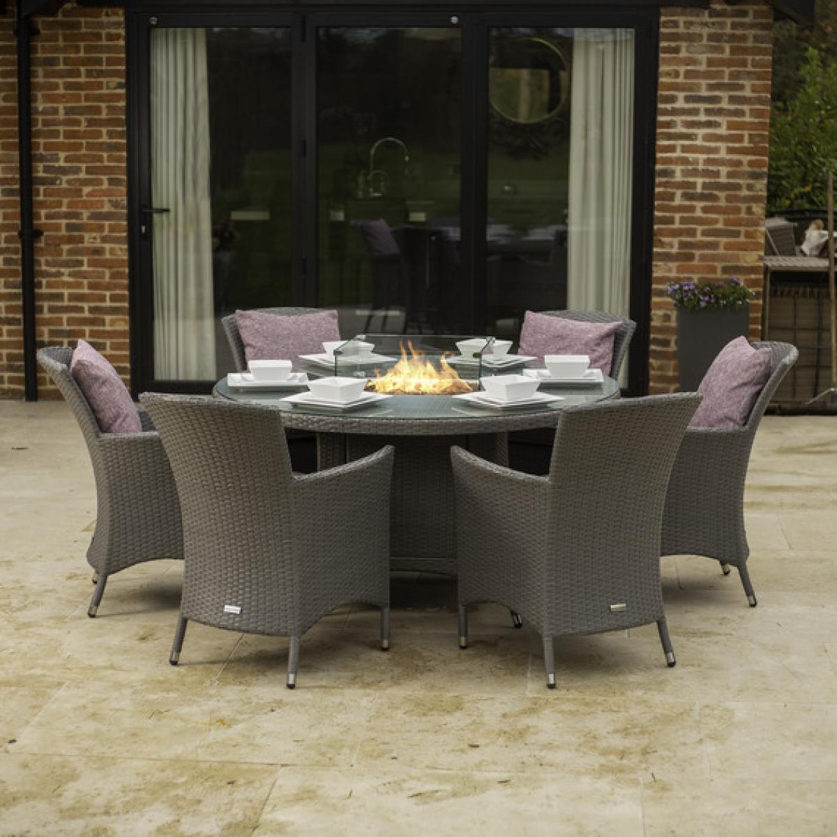 Indiana 6 Seat Round Rattan Furniture Gas Fire Pit Set 1.35m - Grey