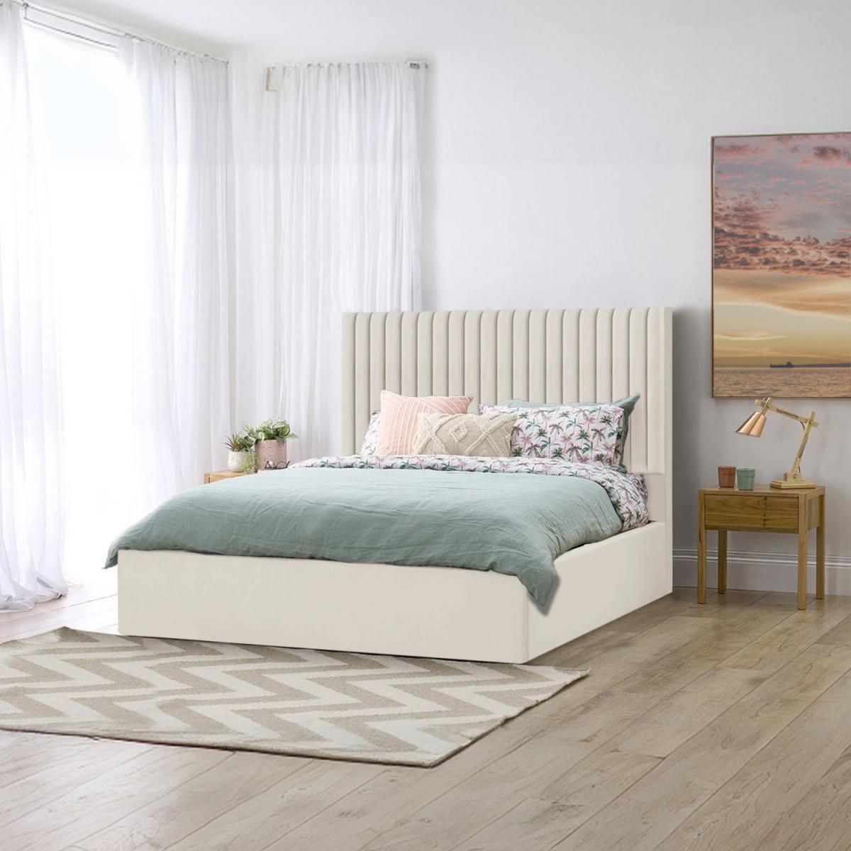 This Panel bed is created in regards to modern style and gives you a look of latest trends to decorate your bedroom. The patterns created on this bed are based on unique but exquisite longitudinal margins that creates a graceful appearance. Furthermore, these elegant patterns are craved out on finest quality of velvet that enhance the aesthetic aspect of this bed. In addition, this bed also features a sublime experience of softness and coziness to offer you with a sound sleep that you have yearned for decades. Succinctly, our beds are the kinds of bed that you dream to possess and experience a relaxing slumber to eradicate all the tired of the weary days. Headboard Height 125cm