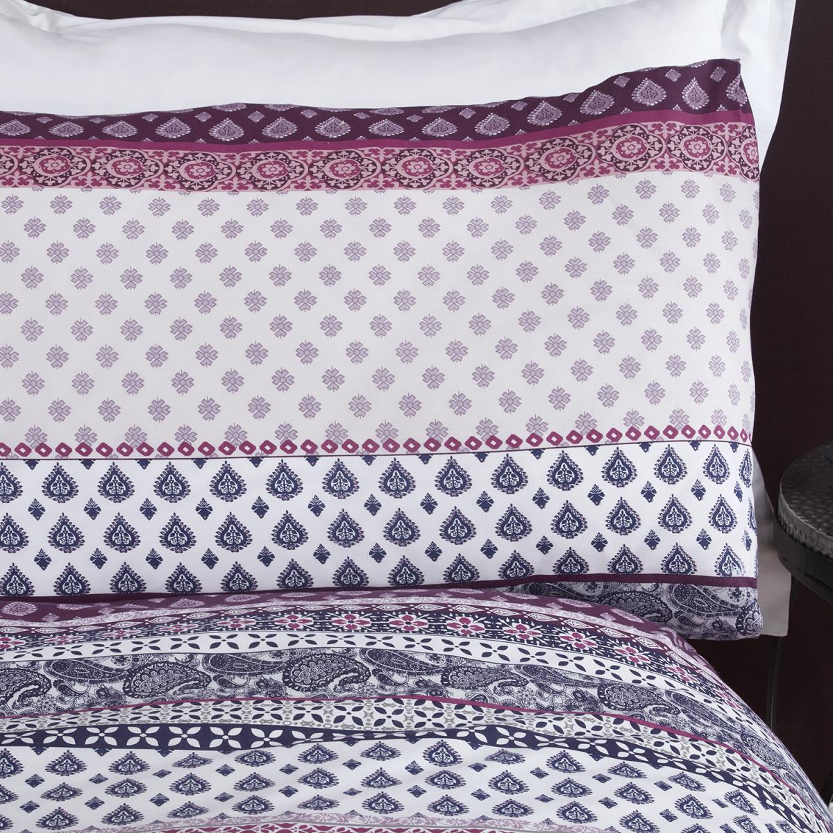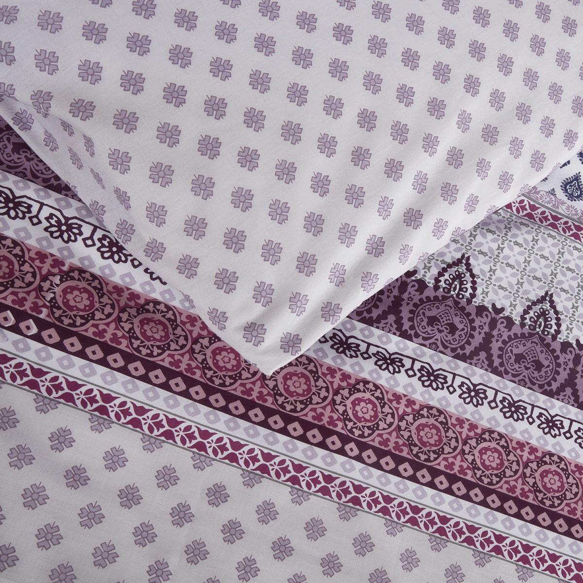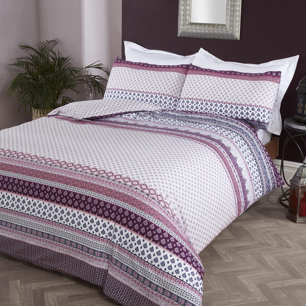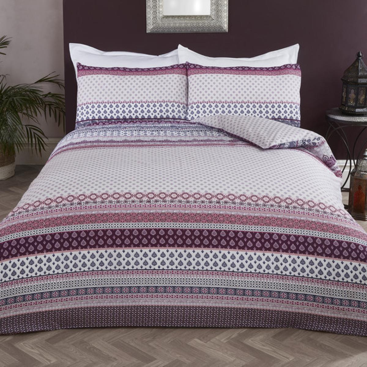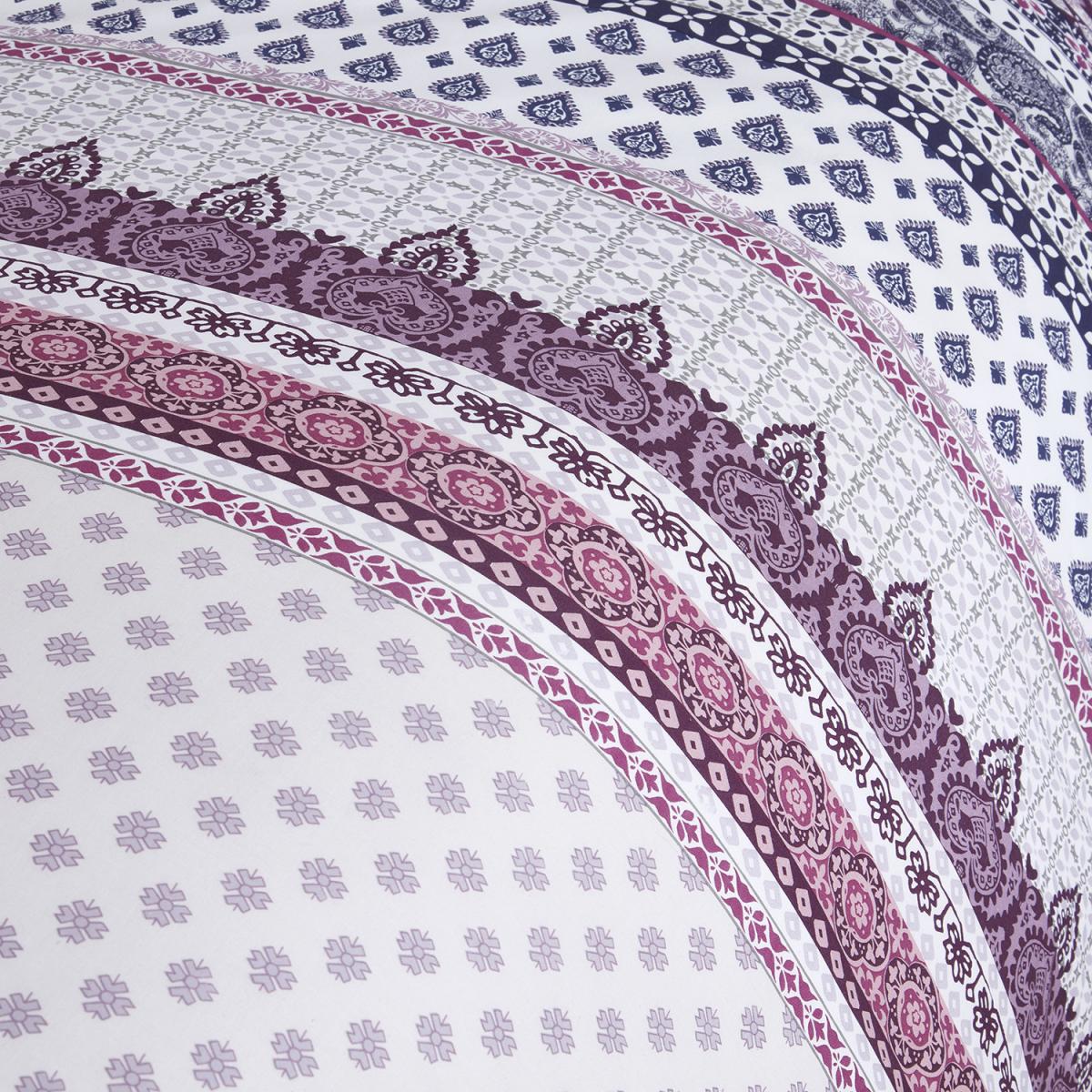 The Indira Tribal Duvet Cover and Pillowcase Set is a colourful and modern bedspread that's sure to add vibrancy and fun to your bedroom. Featuring rich tones of pinks and purples offset with white, this multi-patterned duvet set evokes beautiful tribal charm.