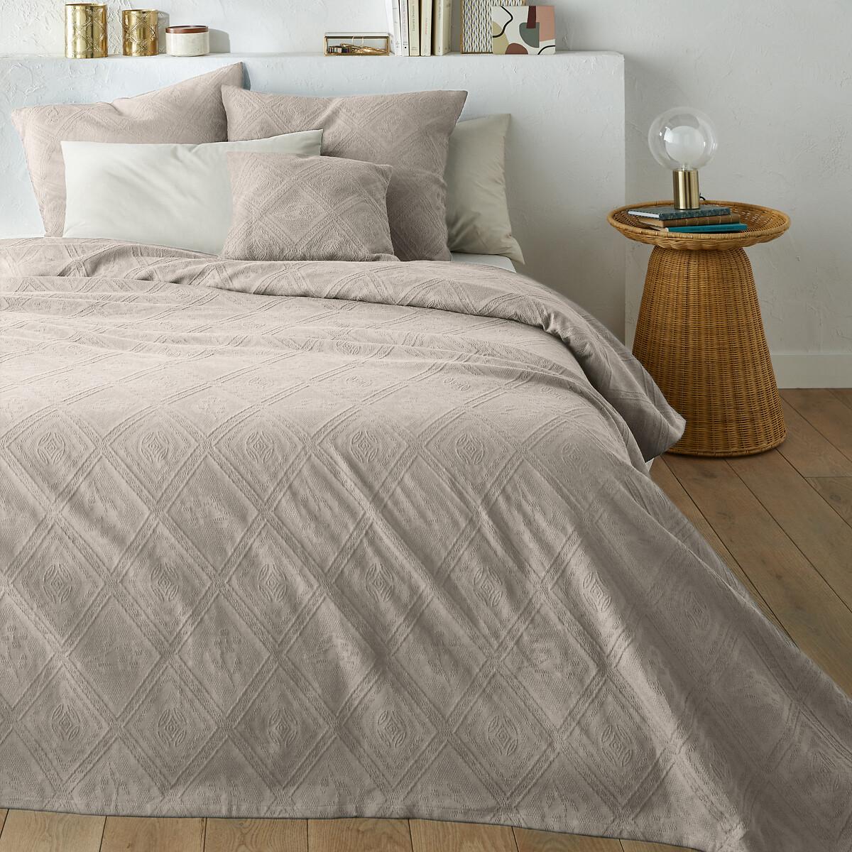 The Indo bedspread is made from superb, heavy-quality cotton jacquard with a subtle diamond motif. Product Details • Pure cotton, jacquard weave • Double topstitched trim • Bedspread washable at 40°Discover the rest of the Indo range online. Dimensions • 160 x 230cm • 180 x 250cm • 230 x 250cm • 250 x 250cm • OEKO-TEX® Standard 100. Standard 100 certification by OEKO-TEX® tests textile products for harmful substances via an independent, international label.