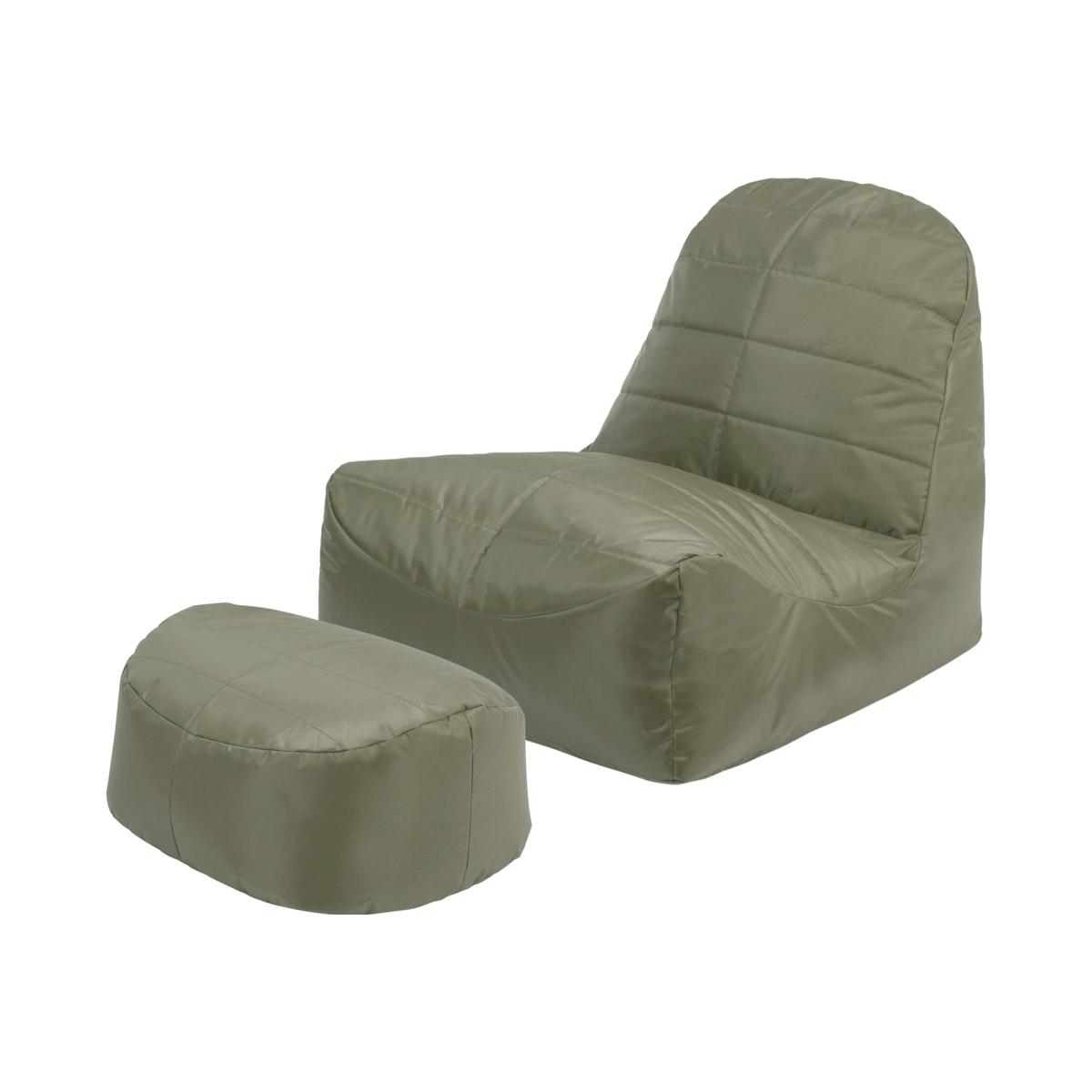 Indoor and Outdoor Recliner Bean Bag with Footstool - Olive