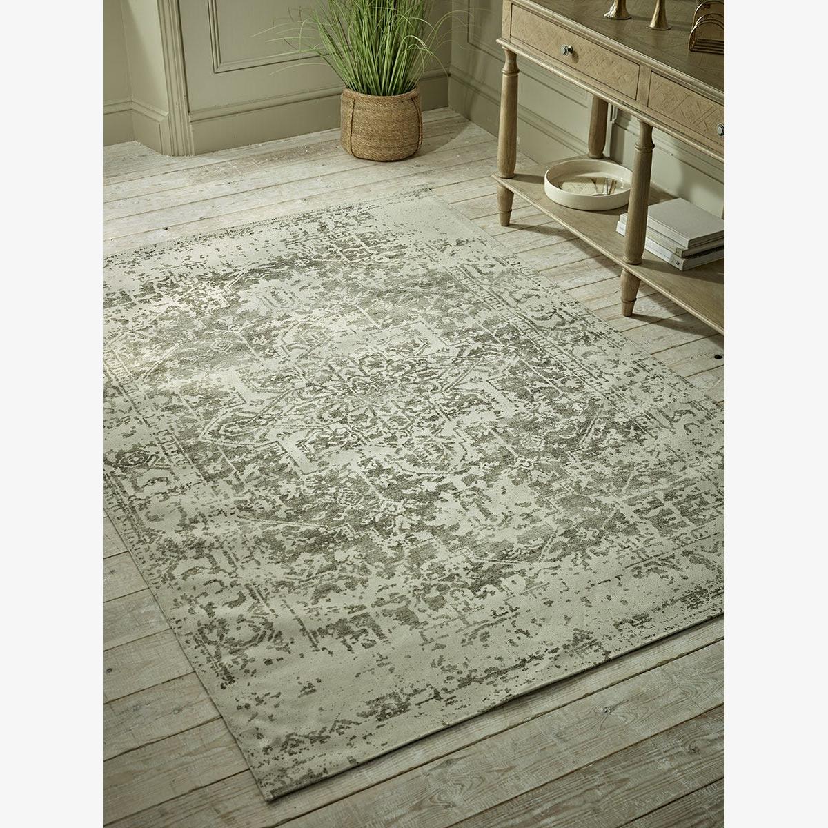 Muted sage and neutrals combine with a worn antique style creating a timeless appeal in our Anantara rug. This slightly distressed finish works to create a vintage and rustic design, perfect for creating an elevated yet laid-back appearance in your home. With indoor and outdoor versatility, place in your living space or on your patio for a soft and welcoming finish.