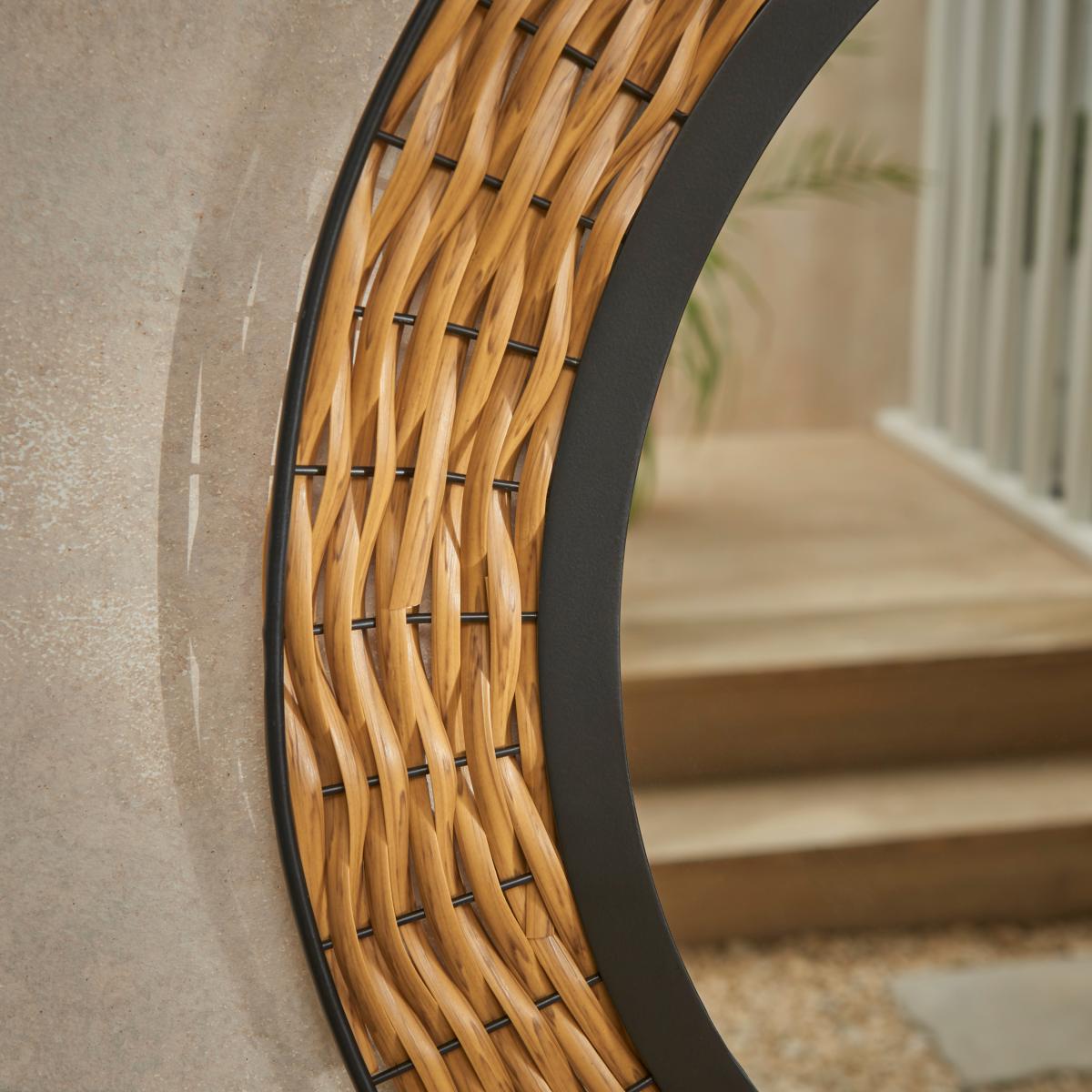 Give your home, whether it's in your home or your back garden a stylish finishing touch with our Artisan Mirror. Made from sturdy iron with a modern rattan edge for that rustic finish. It comes complete with a sleek matt black round edging and a keyhole hook at the back for easy hanging.