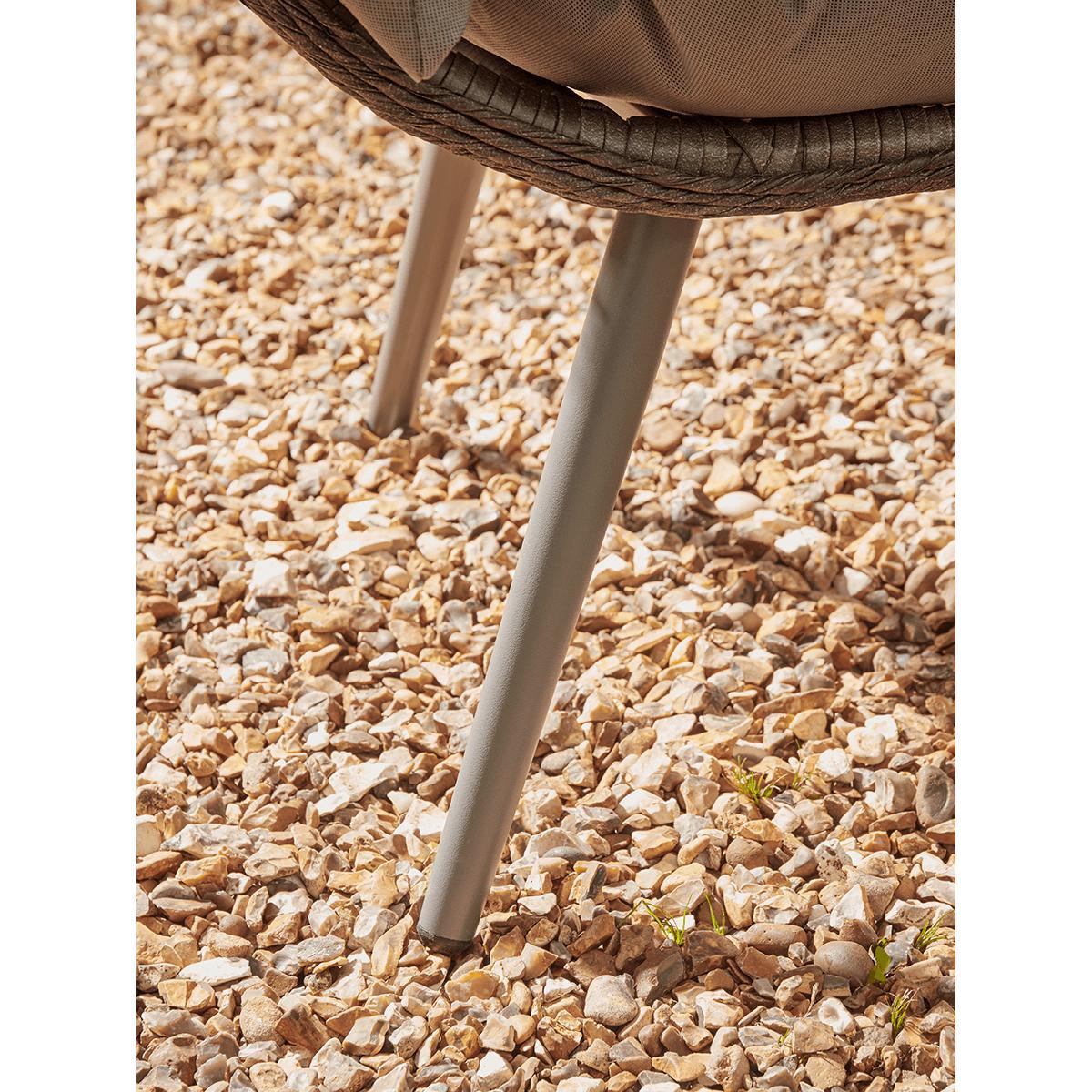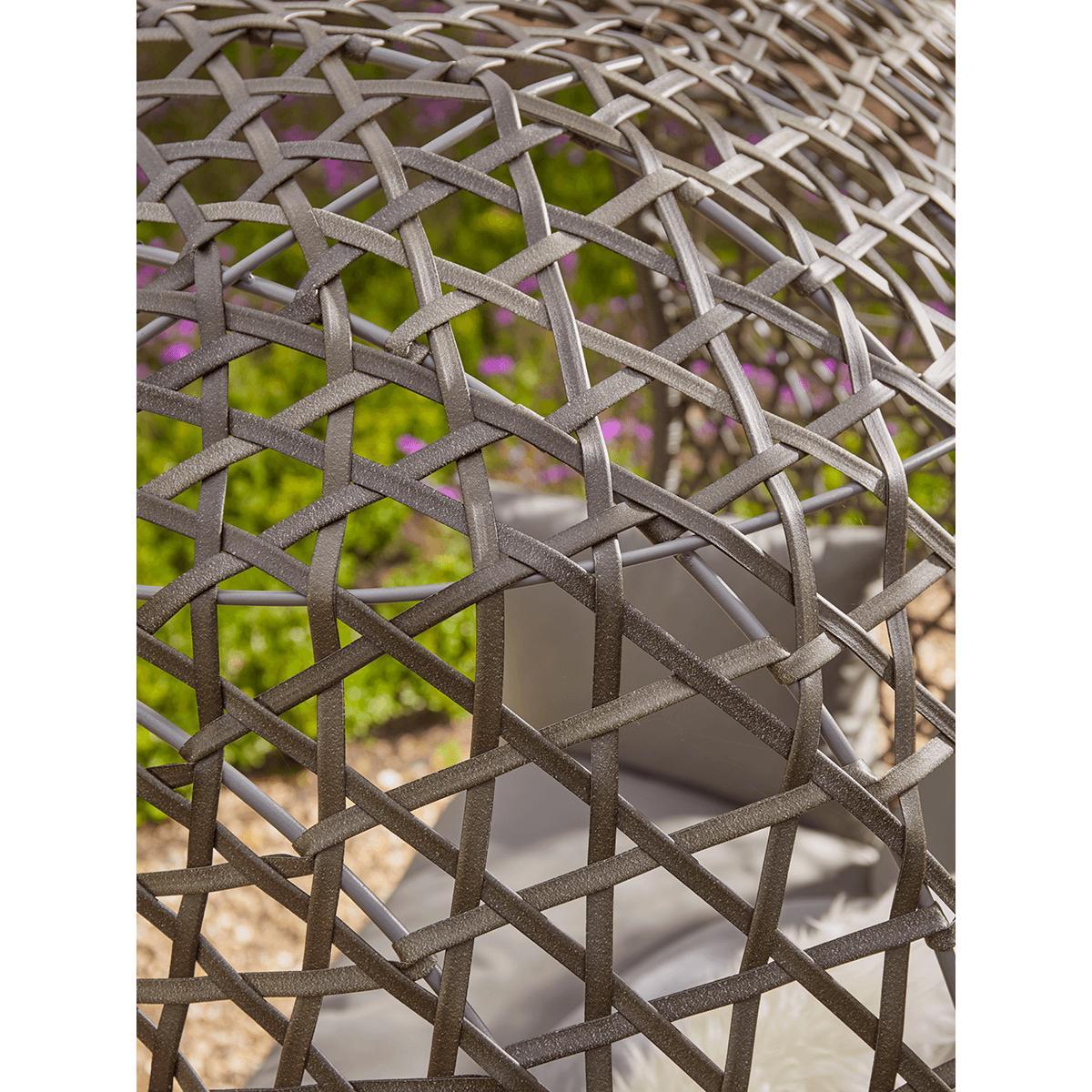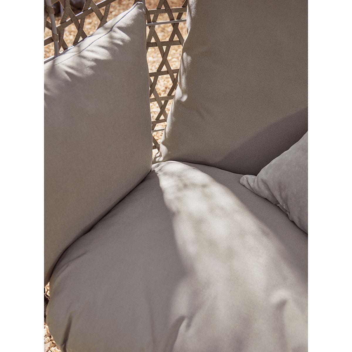 For the ultimate in outdoor lounging luxury, you can't do much better than our pillowy cocoon chair. With a double seat (and room for an extra small one), it's the perfect spot for reading, chatting, or just sitting quietly with the sun on your face. Each chair has a curved, powder-coated iron shell with a pretty lattice effect in faux wicker and a cosy double cushion with back and armrests. Perched on four elegant but sturdy legs, you can place it in your favourite garden spot for hours of relaxation.