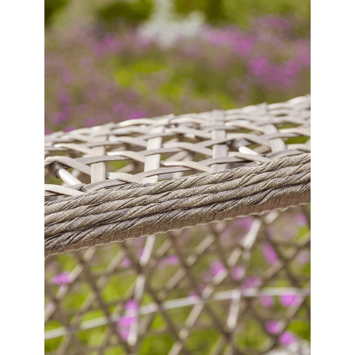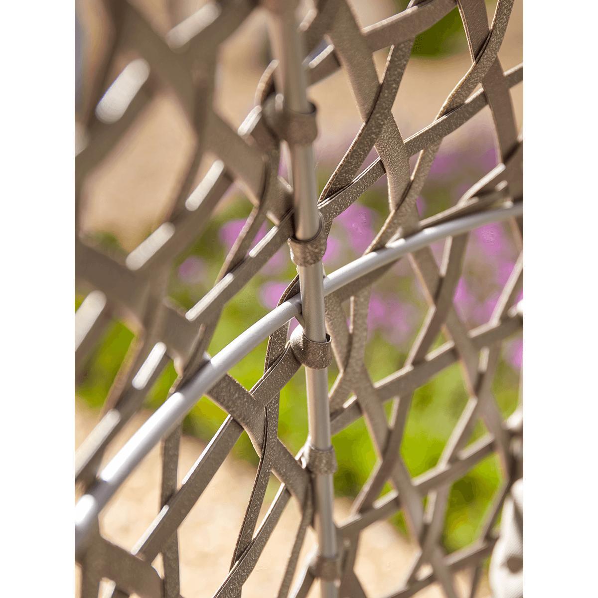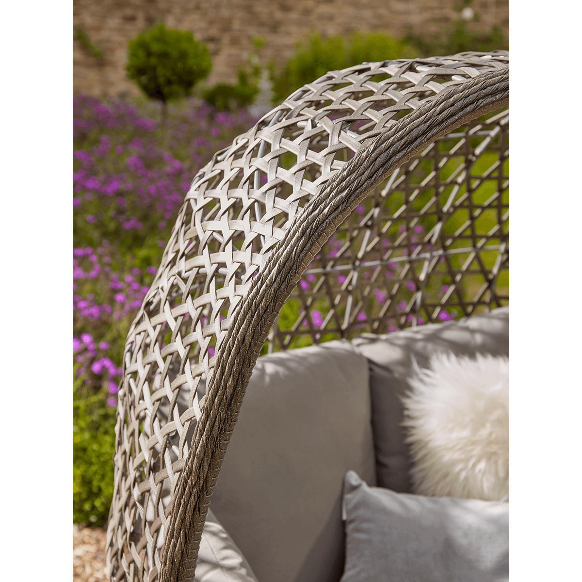 For the ultimate in outdoor lounging luxury, you can't do much better than our pillowy cocoon chair. With a double seat (and room for an extra small one), it's the perfect spot for reading, chatting, or just sitting quietly with the sun on your face. Each chair has a curved, powder-coated iron shell with a pretty lattice effect in faux wicker and a cosy double cushion with back and armrests. Perched on four elegant but sturdy legs, you can place it in your favourite garden spot for hours of relaxation.