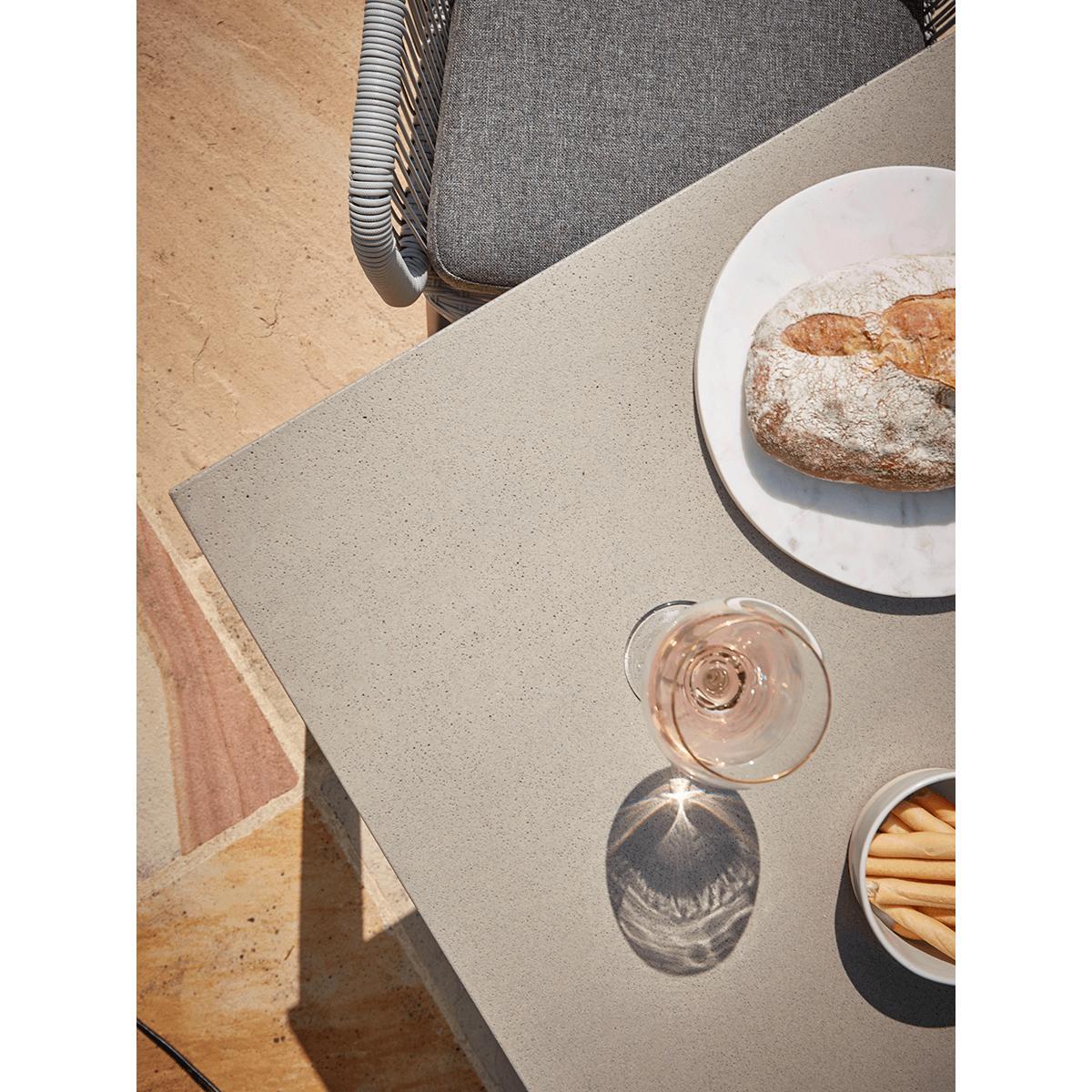 I love this concrete-topped table for its versatility and modern appeal. Its robust surface makes it ideal for outdoor dining but equally suitable for contemporary interior kitchens or open-plan living spaces. The clean, rectangular shape offers a sleek silhouette that works well in minimalist or industrial-style interiors. For styling tips, consider pairing it with neutral-toned chairs to highlight the concrete's texture or adding colourful cushions for a pop of personality. Its sturdy construction also lends itself to a practical yet stylish centrepiece, whether for alfresco meals or indoor gatherings.