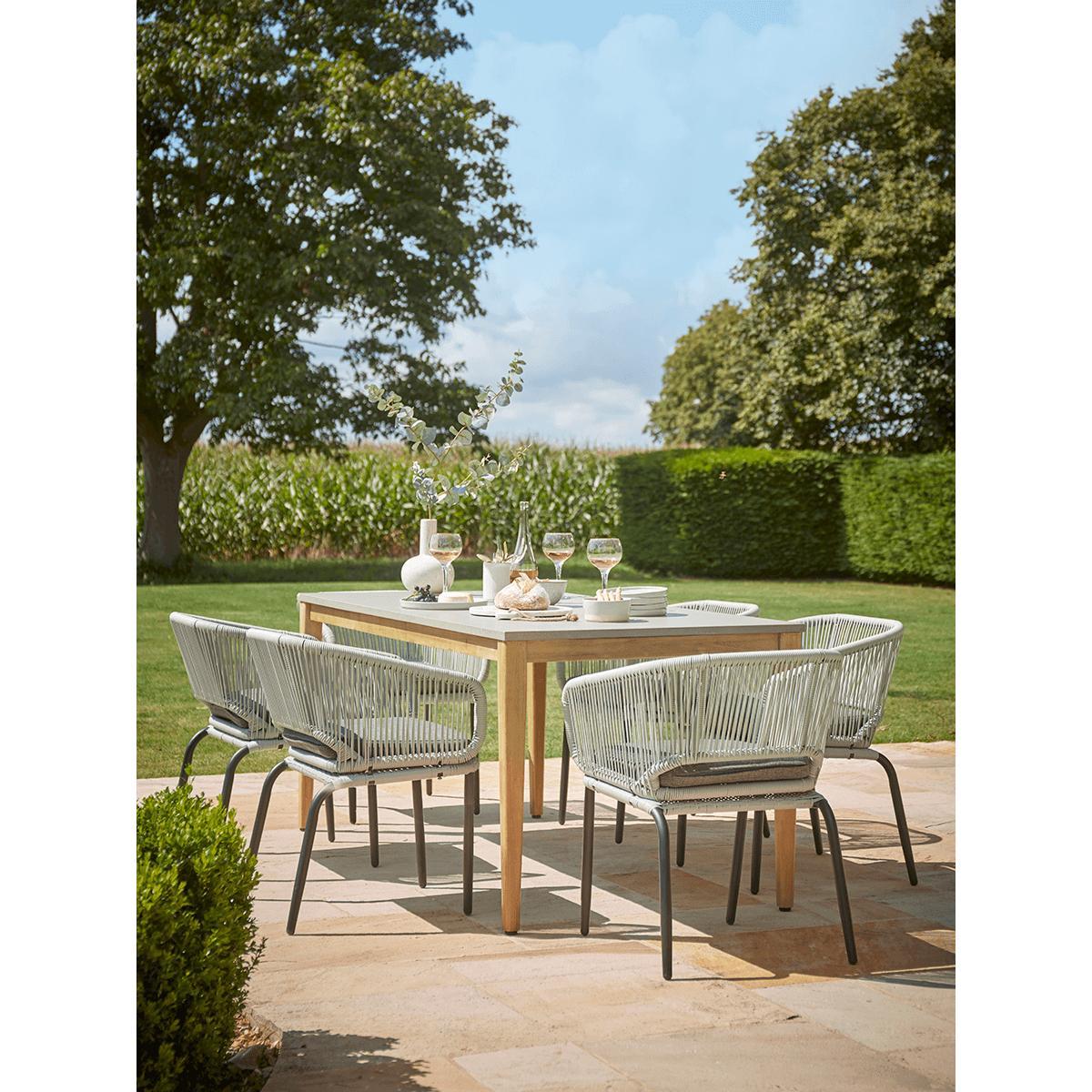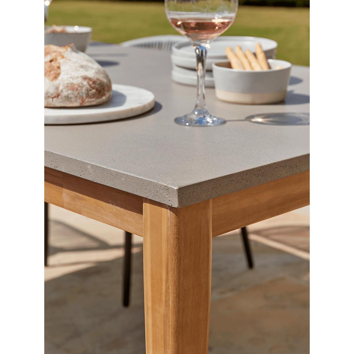 Large, durable and perfect for outdoor dining, our rectangular table has a stylish concrete top, complete with unique imperfections for a nod to the industrial trend. With a smooth, grey tabletop and treated wooden frame, it pairs beautifully with our. Two Grey String Dining Chairs. For gatherings and family meals.