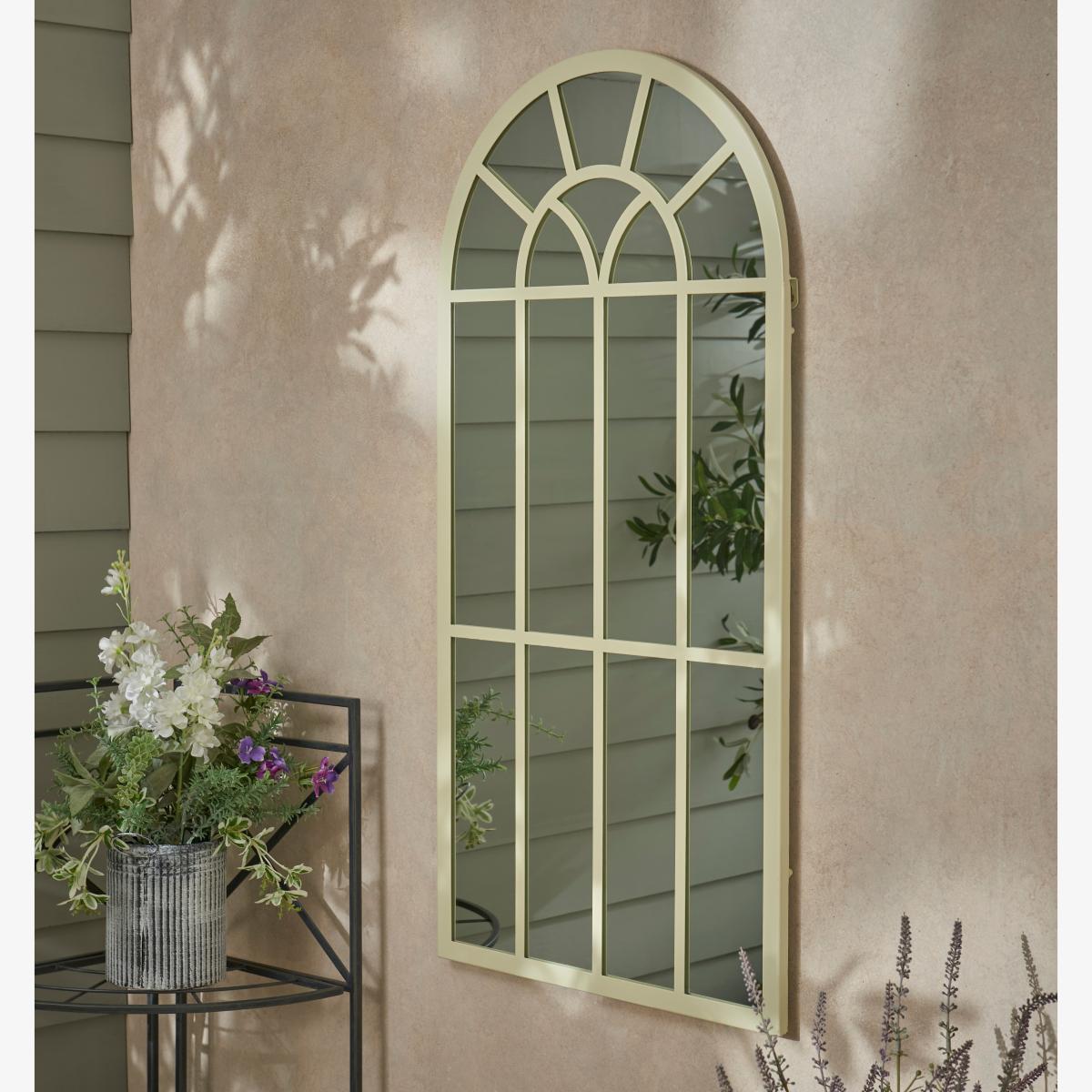 Bring an element of design to both your indoor and outdoor space with this elegant arch wall mirror. In a timeless window-effect mirror accented in a fresh cream finish. Made from strong and sturdy iron which has keyhole hooks at the back to seamlessly hang to your wall.