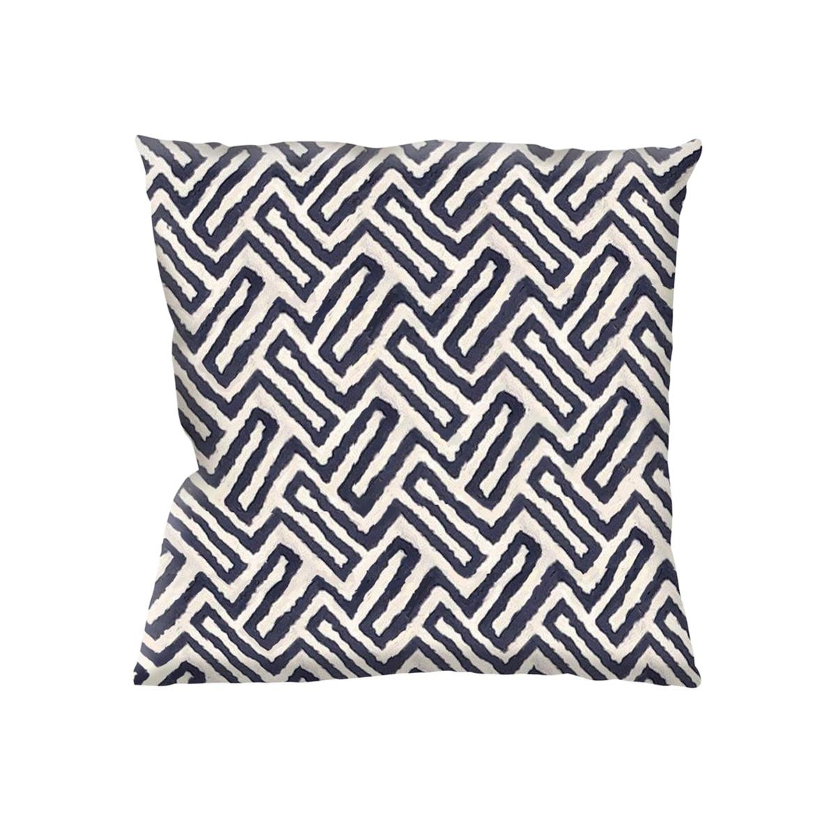 I love this cushion for its versatility and durability, making it ideal for both indoor and outdoor spaces. The bold geometric pattern and navy-and-white colour scheme lend itself well to modern and coastal interiors, adding a splash of style without overwhelming the space. Its water-repellent and fade-resistant qualities make it practical for outdoor use, perfect for garden furniture or a patio seating area that needs to withstand the elements. Styling tips include pairing it with neutral or navy furnishings for a cohesive look, or mixing with other textured textiles for a layered, relaxed vibe. It’s a smart choice for anyone wanting a stylish, low-maintenance cushion that can easily transition from patio to living room.