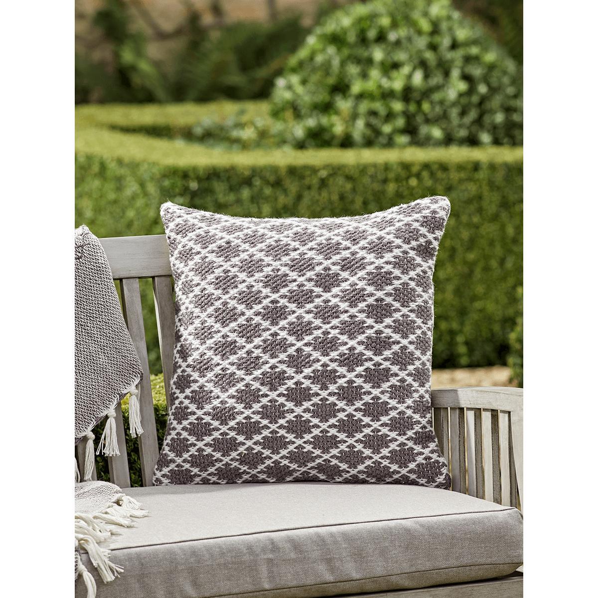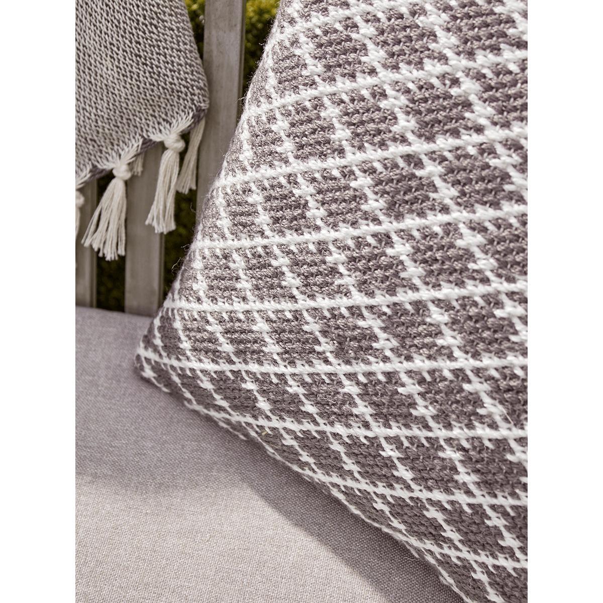 With a gorgeous, geometric diamond pattern in warm grey, our versatile cushion will help you to add texture and style to your outdoor space. Each is handwoven, with a soft look and feel, perfect for adding a decorative touch to your outdoor furniture. A matching. Rug. And. Throw. Are also available.