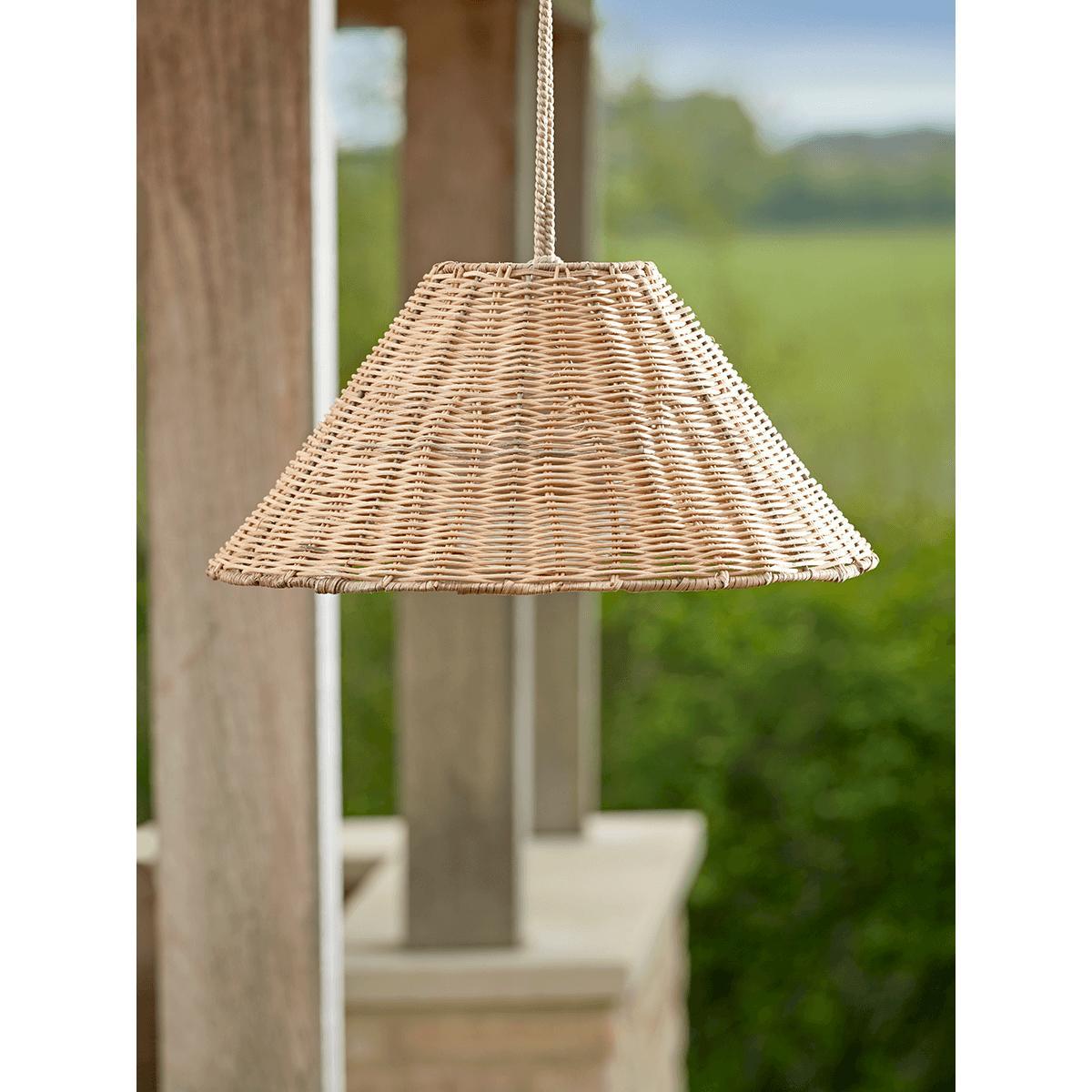 I love this faux wicker pendant for its versatile, laid-back aesthetic that easily enhances outdoor lounging spaces or casual indoor areas. Its natural-looking finish makes it a great choice for sunrooms, covered patios, or even kitchens with coastal or rustic themes. When styling, consider pairing it with other natural textures like rattan furniture or linen cushions to create a cohesive, relaxed vibe. For practical tips, hang it at different heights to add visual interest and ensure it doesn’t obstruct views or movement. It's also easy to keep looking fresh-simply wipe with a damp cloth to remove dust, making it perfect for spaces where durability and ease of maintenance are a priority.