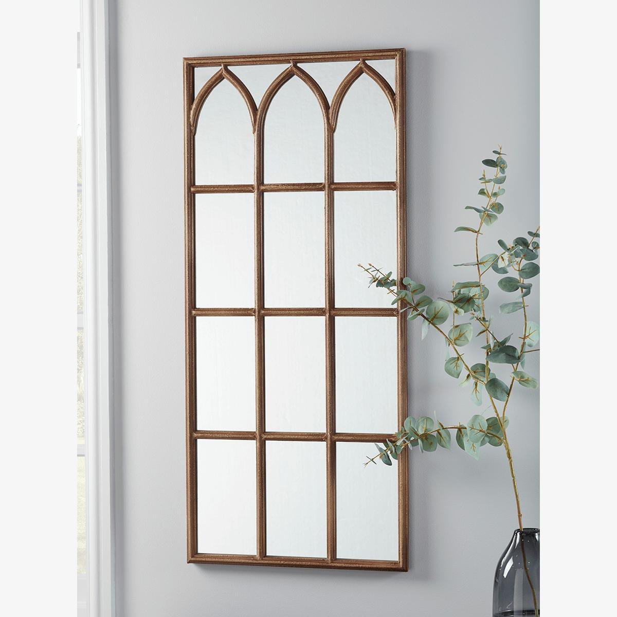I love this indoor outdoor gothic mirror for its bold yet timeless design. Its rectangular shape and architectural detailing add a striking focal point, especially in hallways or living spaces that feature a mix of classic and contemporary styles. It’s versatile enough to suit both minimalist and eclectic interiors, working well against neutral walls to highlight its structure or as a statement piece in a layered, textured scheme. When styling, consider placing it near natural light to enhance its reflective qualities, or pair with natural materials like the wooden frame for a cohesive look. This mirror’s design lends itself well to outdoor entryways or covered patios, making it a practical yet graphic feature in any transitional space.