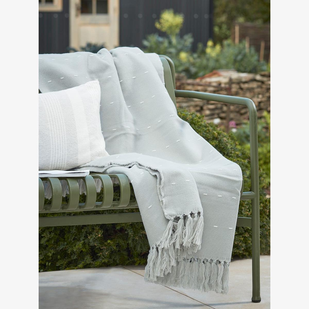 Ideal for those times when you want to dress your garden lounge set as beautifully as your living room, this indoor outdoor throw is a wonderful soft grey tone chosen specifically to complement the cushion colours on all of our outdoor furniture sets. Made from a cosy blend of polyester and acrylic, this soft fringed blanket has a running stich stripe and will be both UV and mould resistant as well as swift to dry, should the odd shower catch you out.