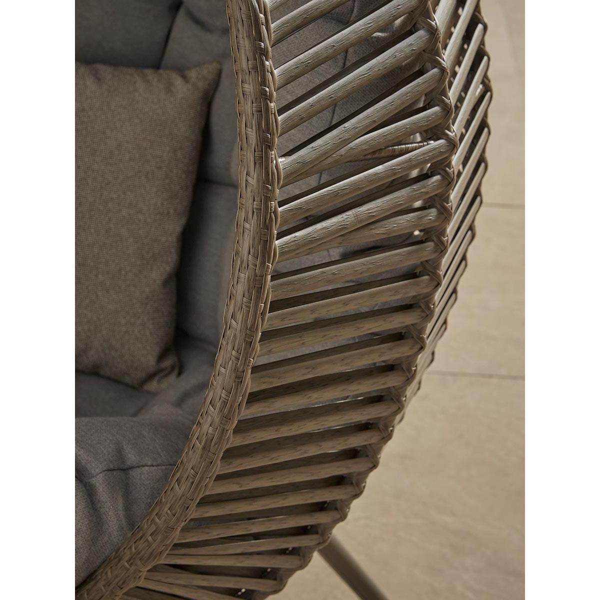 I love this hanging egg chair because of its modern yet relaxed aesthetic, making it versatile for both indoor and outdoor spaces. It works particularly well in contemporary gardens, sunrooms, or even as a statement piece in a cosy corner of a living room. When styling, consider pairing it with cushions in earthy tones or tactile fabrics to enhance comfort and visual appeal. Practical tips include placing it on a level surface to maximise stability, and adding a small side table nearby for drinks or books. Its standalone design makes it ideal for creating a laid-back, inviting corner-perfect for unwinding or casual entertaining.