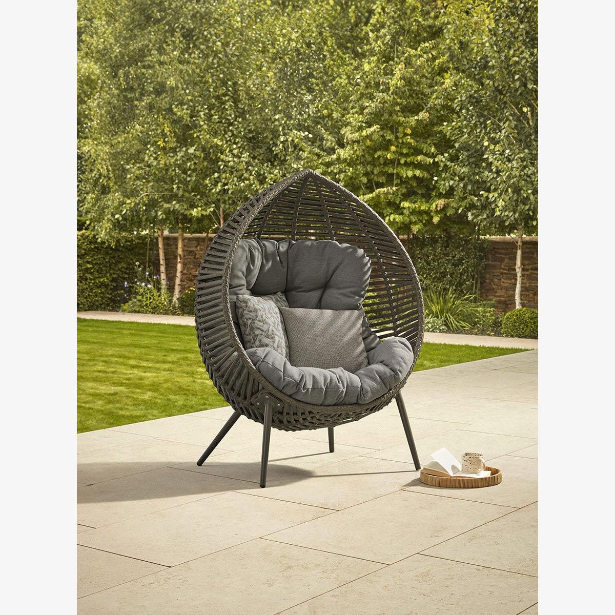 Relax and unwind in the ultimate comfort with our Indoor Outdoor Teardrop Occasional Chair. With a large, plump cushion that curves to the faux wicker frame, which has a natural tone, there is plenty of space for you to cosy up and enjoy the summer sun all day long. Whats better: in the winter when the weather no longer permits outdoor seating, this chair can be repurposed inside for a cosy reading nook in the colder months!