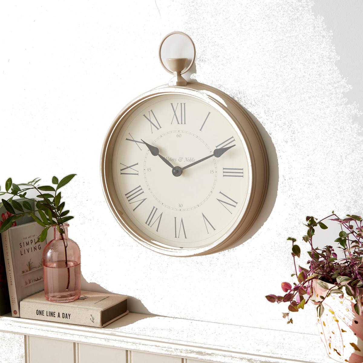 Indoor Outdoor Vintage Pocket Watch Wall Clock 39cm Cream