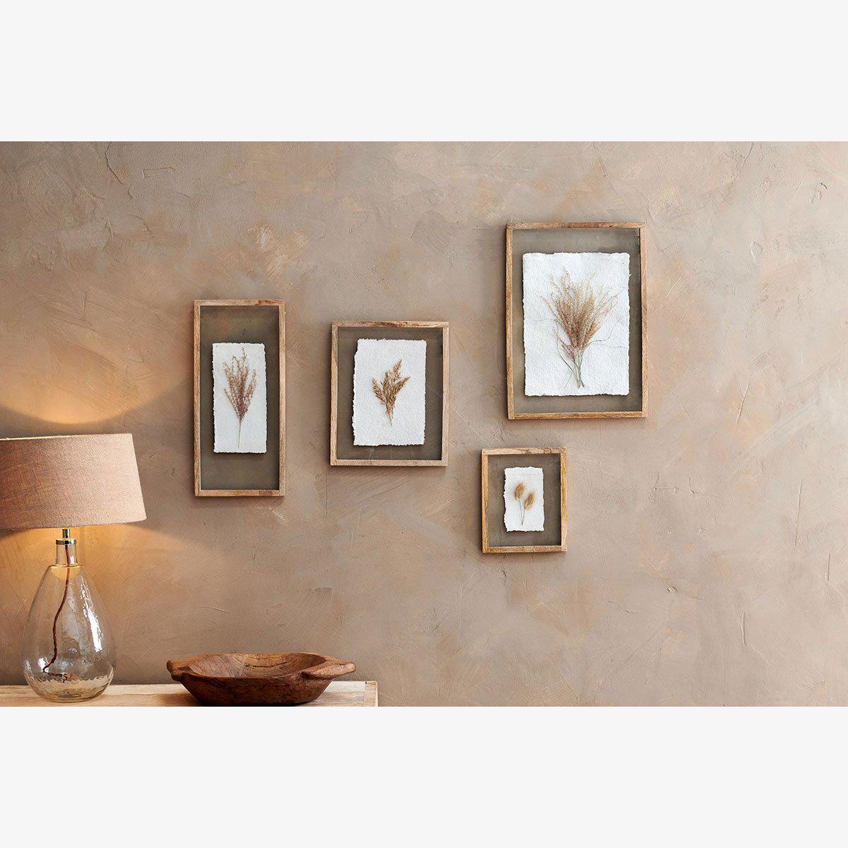 I love theIndu wooden frame because it offers a warm, natural touch that complements both contemporary and rustic interiors. Its mango wood construction brings a subtle earthy tone, making it versatile for settings like living rooms, bedrooms, or even cosy reading nooks. Stylistically, it works particularly well in pared-back minimalist spaces when combined with neutral tones, or in boho interiors layered with textures and natural materials. For practical styling, consider grouping multiple frames in a gallery wall for visual interest or placing a single one above a sideboard for understated charm. Keep the imagery simple or natural; dried botanicals as shown in the photo are a lovely match that echoes the organic feel of the wood.