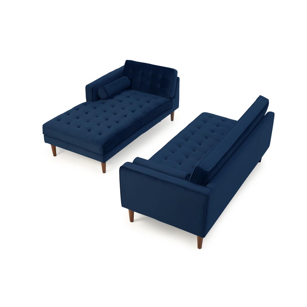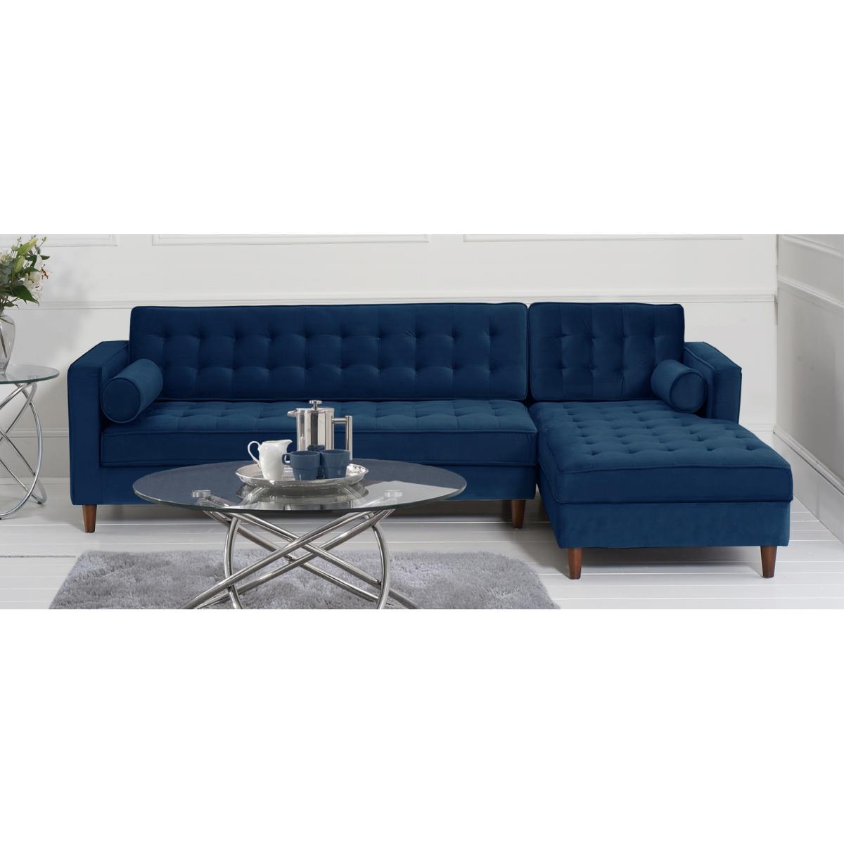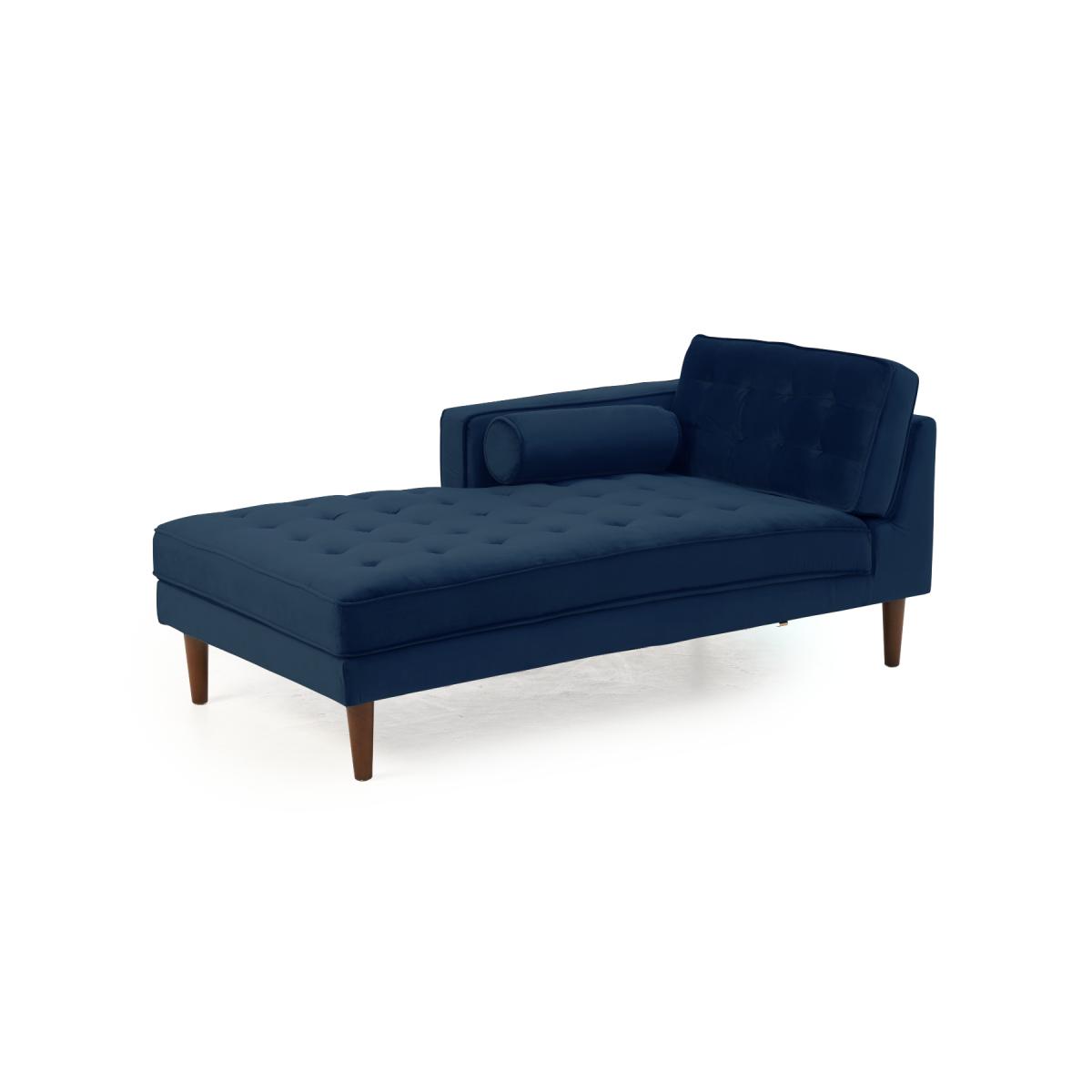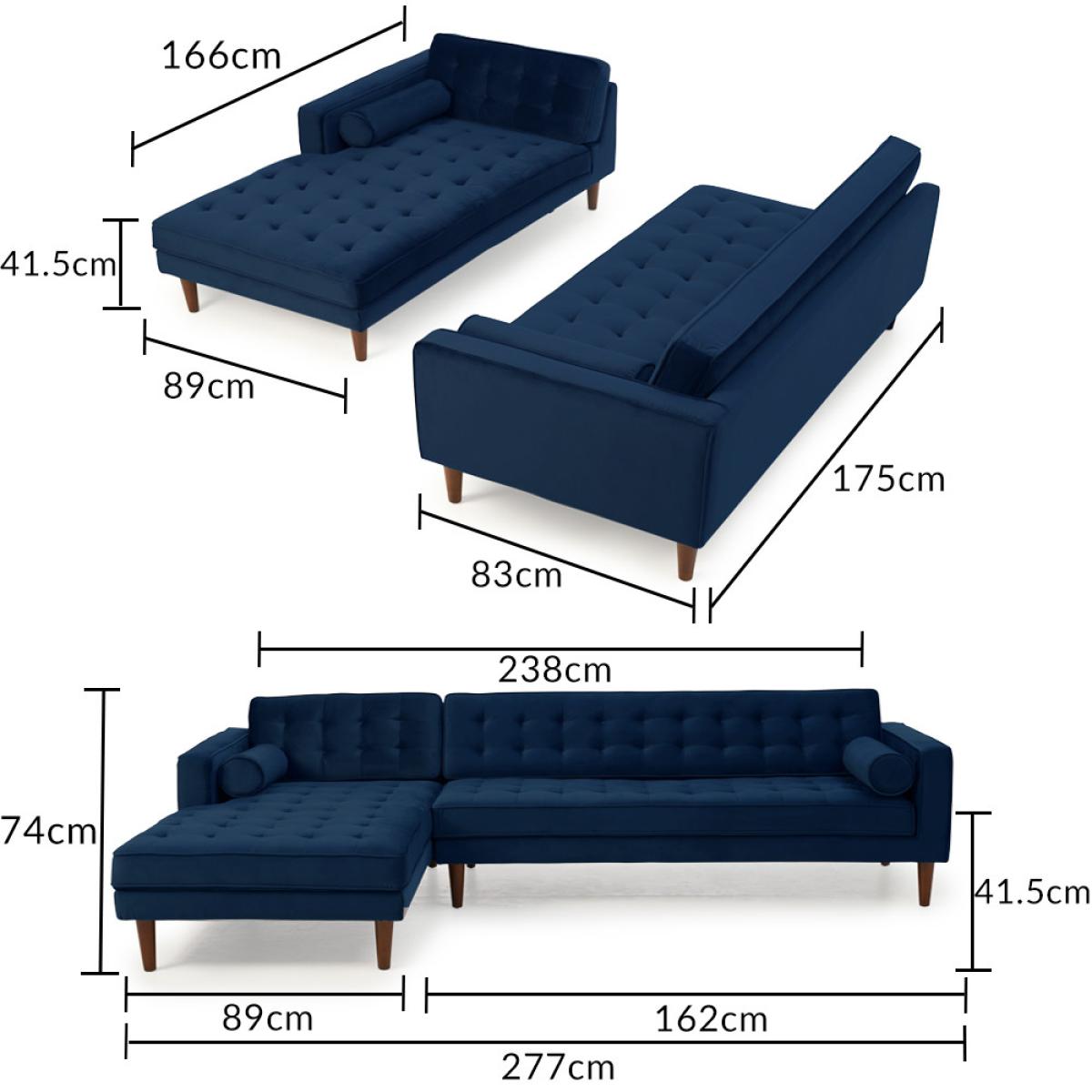 With a modern silhouette and buttoned design, the Indus Blue Velvet Right Facing Chaise Sofa is a stylish addition to any home. Featuring soft blue velvet upholstery, the Chaise Sofa is chic and spacious – perfect for the whole family to relax in style. Large and luxurious blue velvet Chaise Sofa Soft-touch plush velvet for a sumptuous look and feel Stylish and spacious – ideal for the whole family Buttoned design on the backrest for a touch of classic style Deep filled foam seat cushions offer comfort and support Elegant solid wood feet are sturdy and supportive Note: Sofa height is 61cm without back cushions.